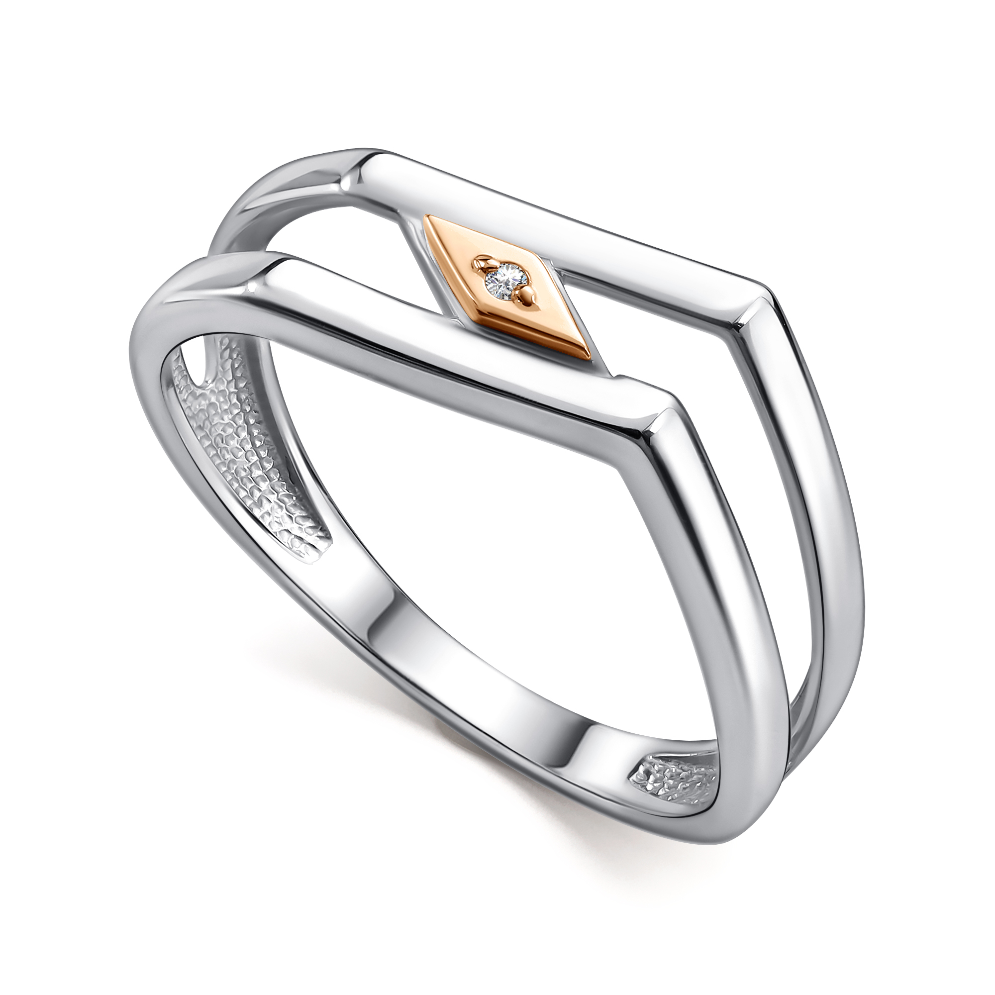 Кольцо из серебра 925 пробы с накладкой из золота 585 пробы с бриллиантами
