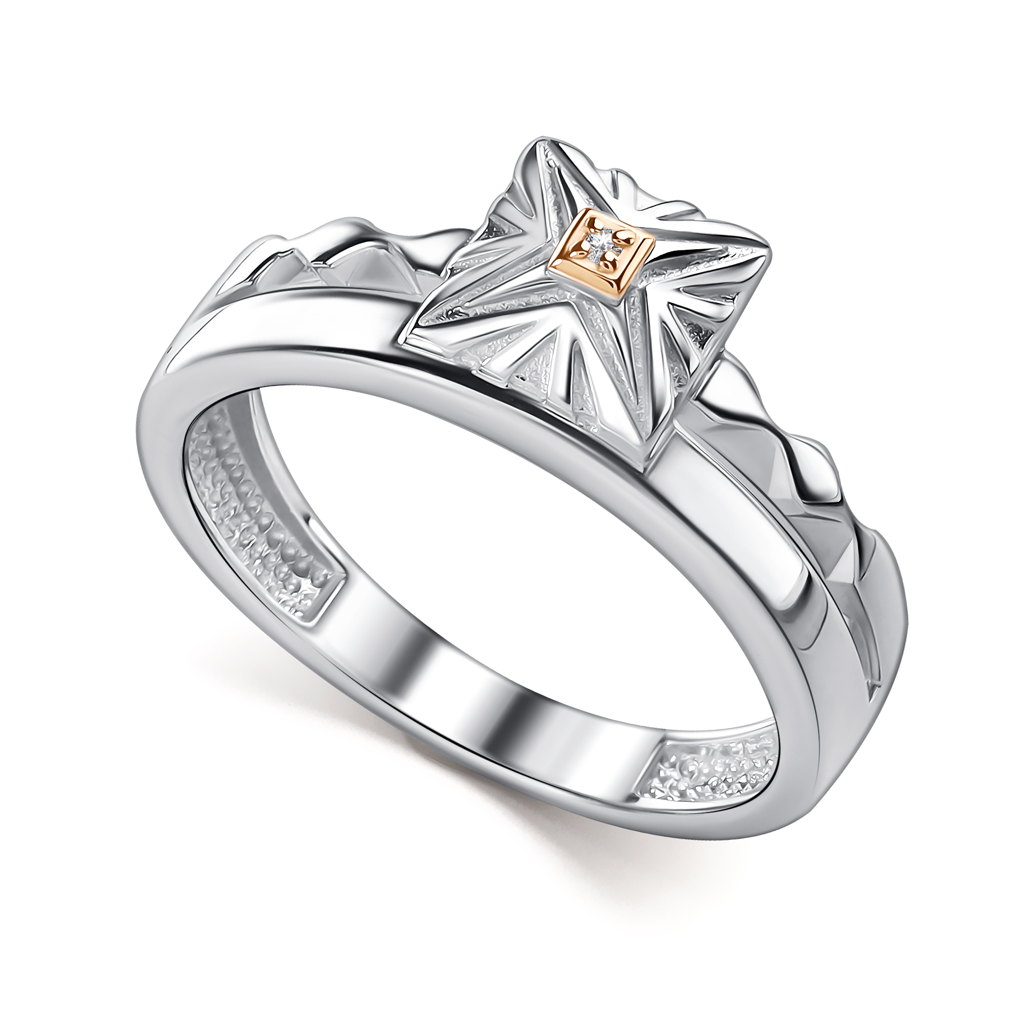 Кольцо из серебра 925 пробы с накладкой из золота 585 пробы с бриллиантами