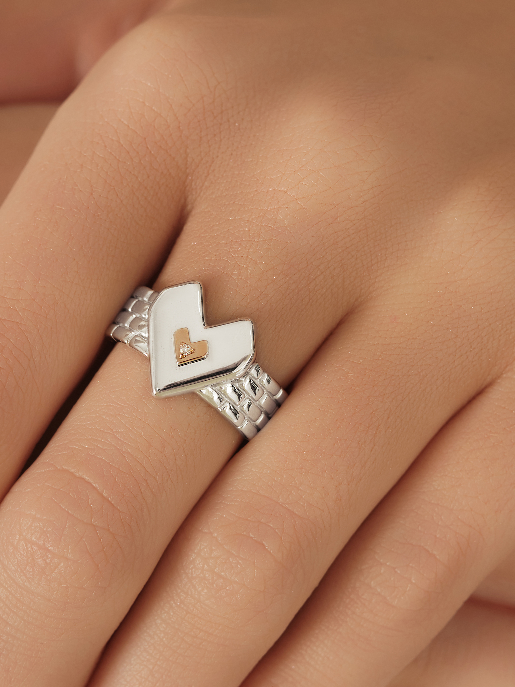 Кольцо из серебра 925 пробы с накладкой из золота 585 пробы с бриллиантами