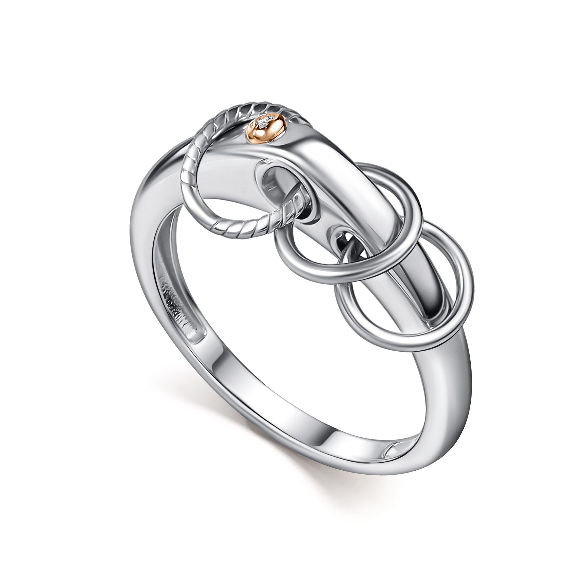 Кольцо из серебра 925 пробы с накладкой из золота 585 пробы с бриллиантами