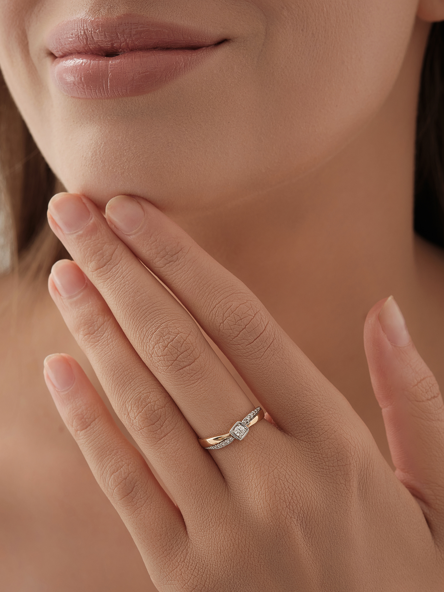 Нежность и романтичность – это то, что природой заложено в каждой девушке! Утонченное золотое кольцо с небольшими сверкающими фианитами станет Вашим личным символом молодости, хрупкости и свободного духа!