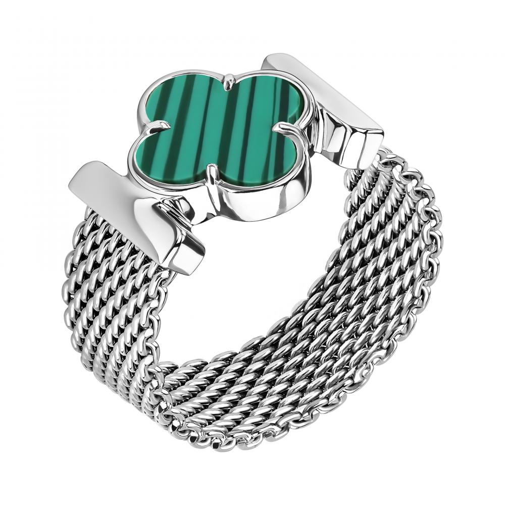Кольцо из серебра 925 пробы с искусственным малахитом