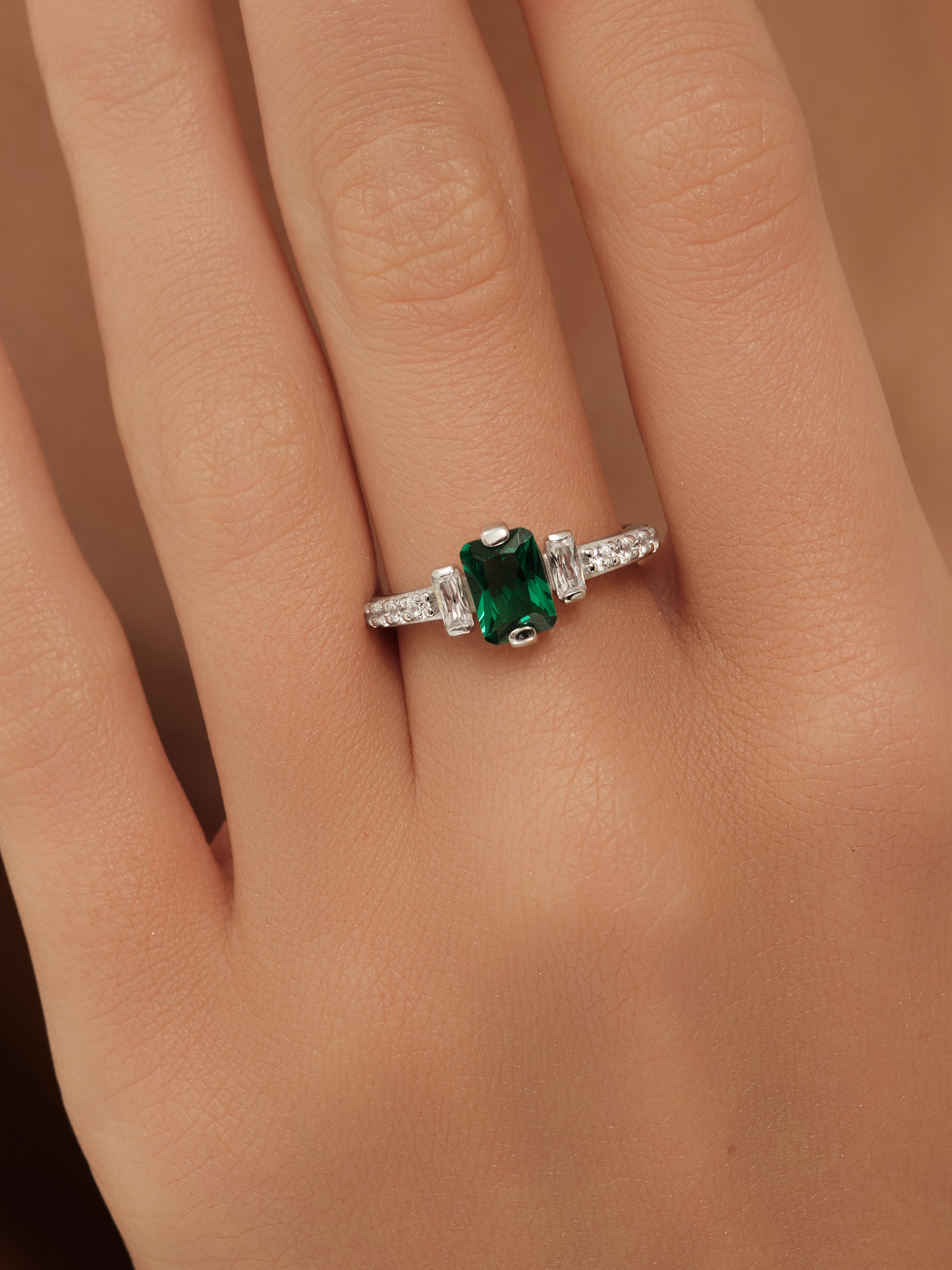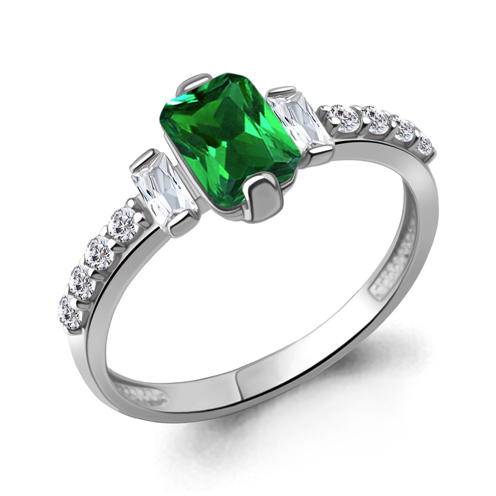 Кольцо из серебра 925 пробы с искусственным изумрудом и фианитами