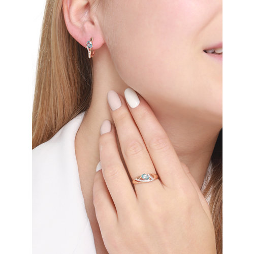 Изящное кольцо с топазом огранки груша, инкрустировано фианитами в виде угла. Такое необычное решение подчеркнёт ваш безупречный вкус и желание идти в ногу со временем. Резная шинка подчёркивает геометричный стиль украшения.