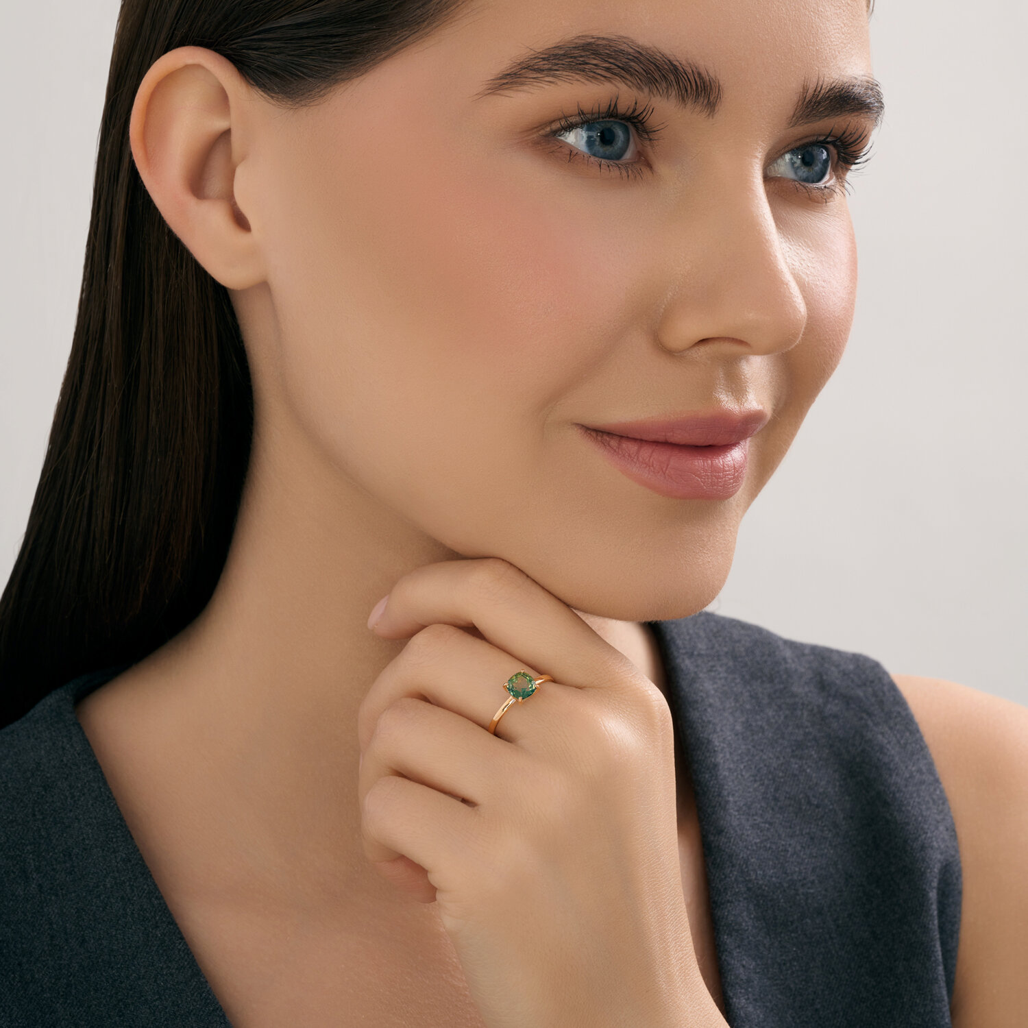 Кольцо (585) топаз зеленый