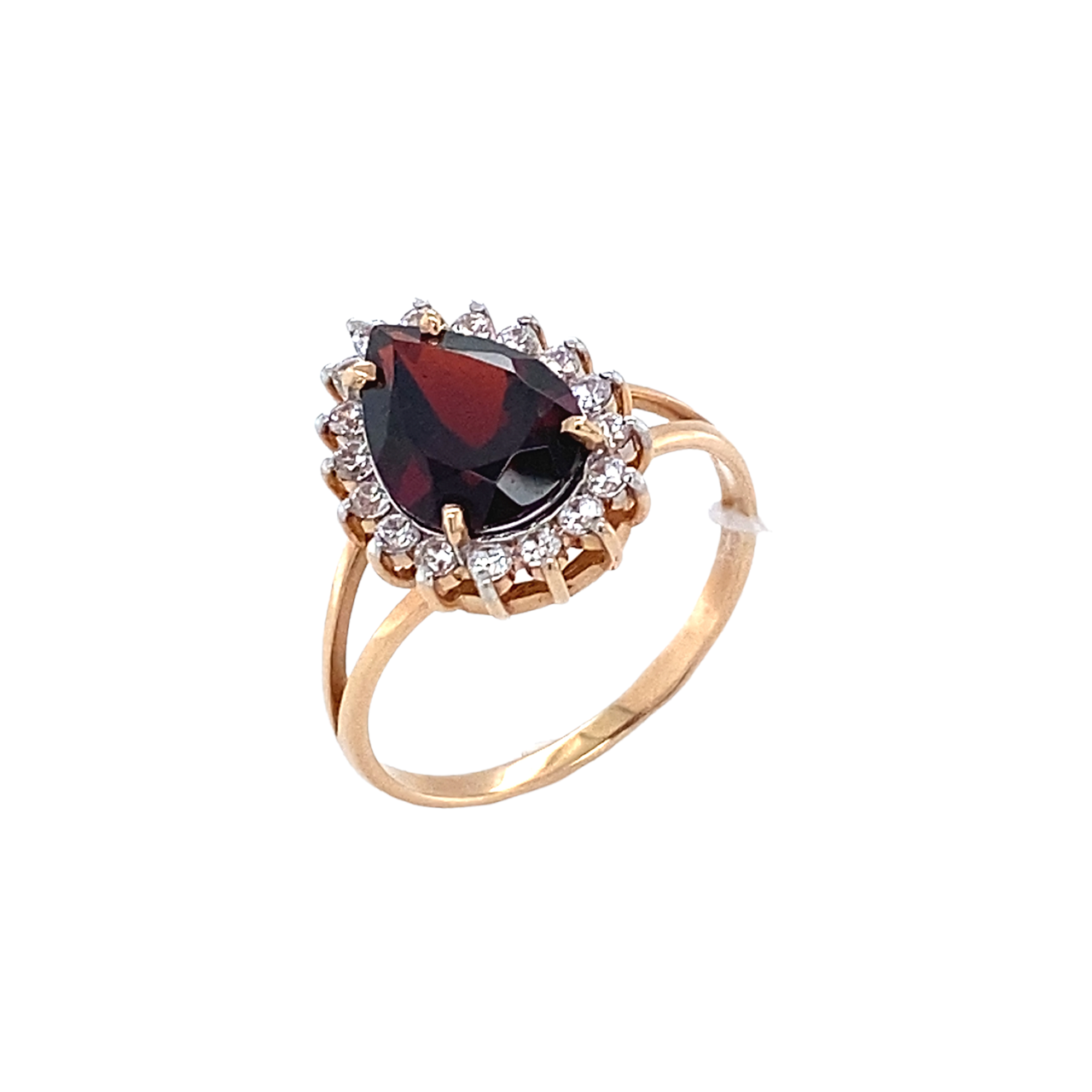Кольцо из золота 585 пробы с гранатом и фианитами