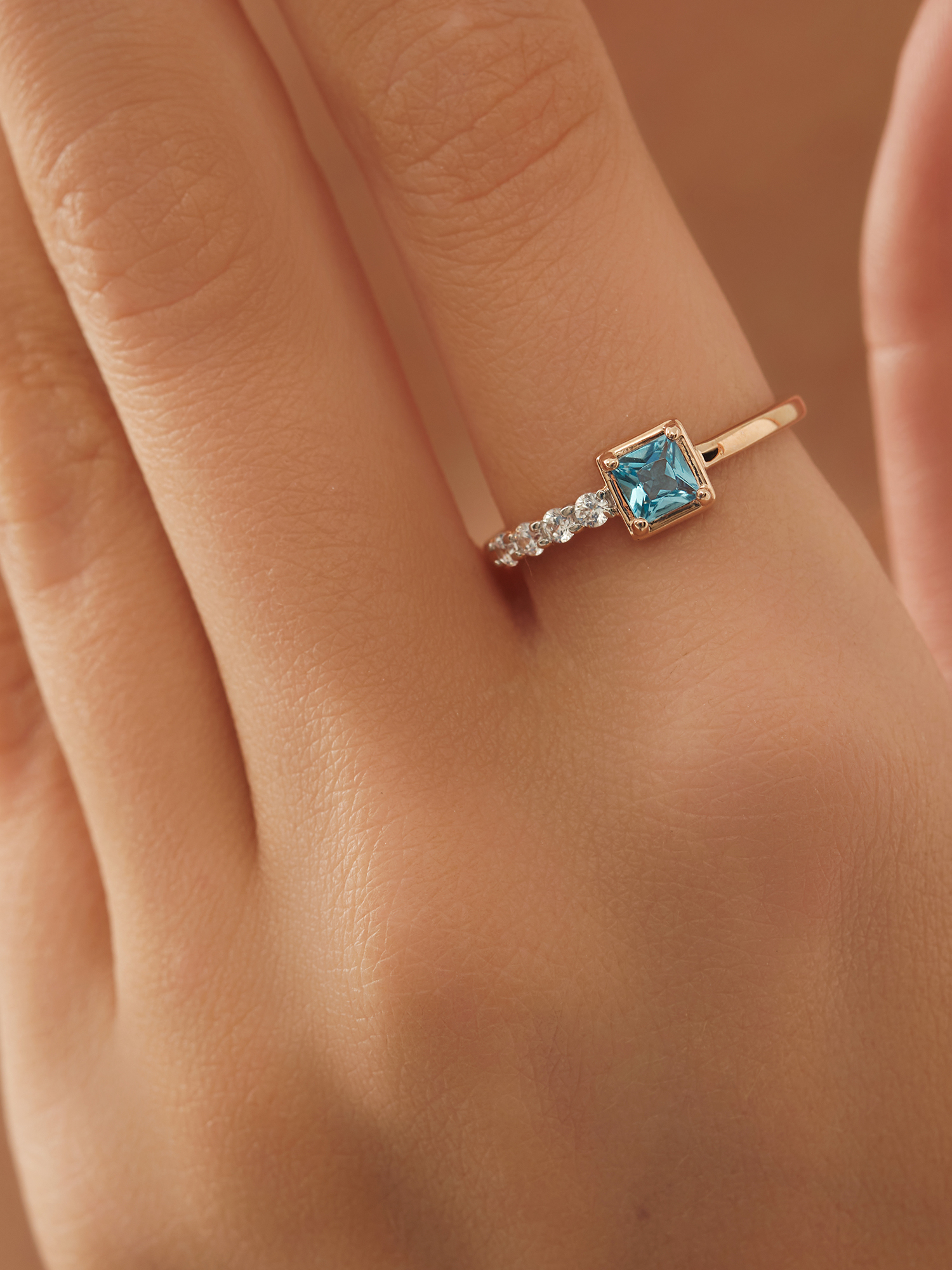 Кольцо из золота 585 пробы с топазом и финитами