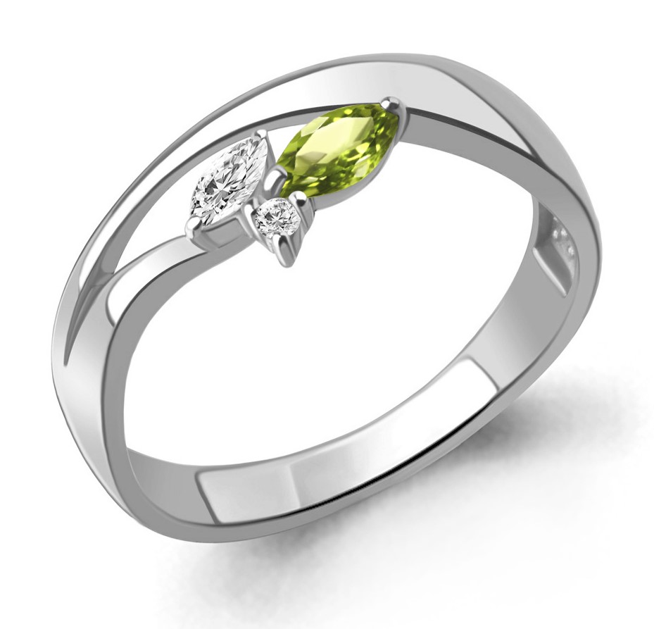 Кольцо из серебра 925 пробы с хризолитами и фианитами
