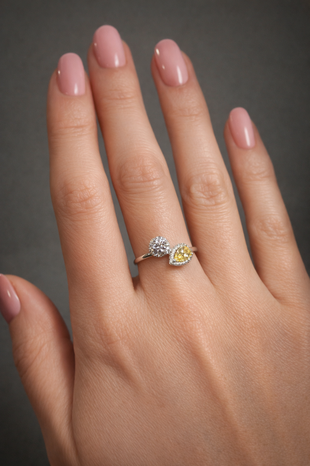Кольцо из белого золота 585 пробы с цветными фианитами