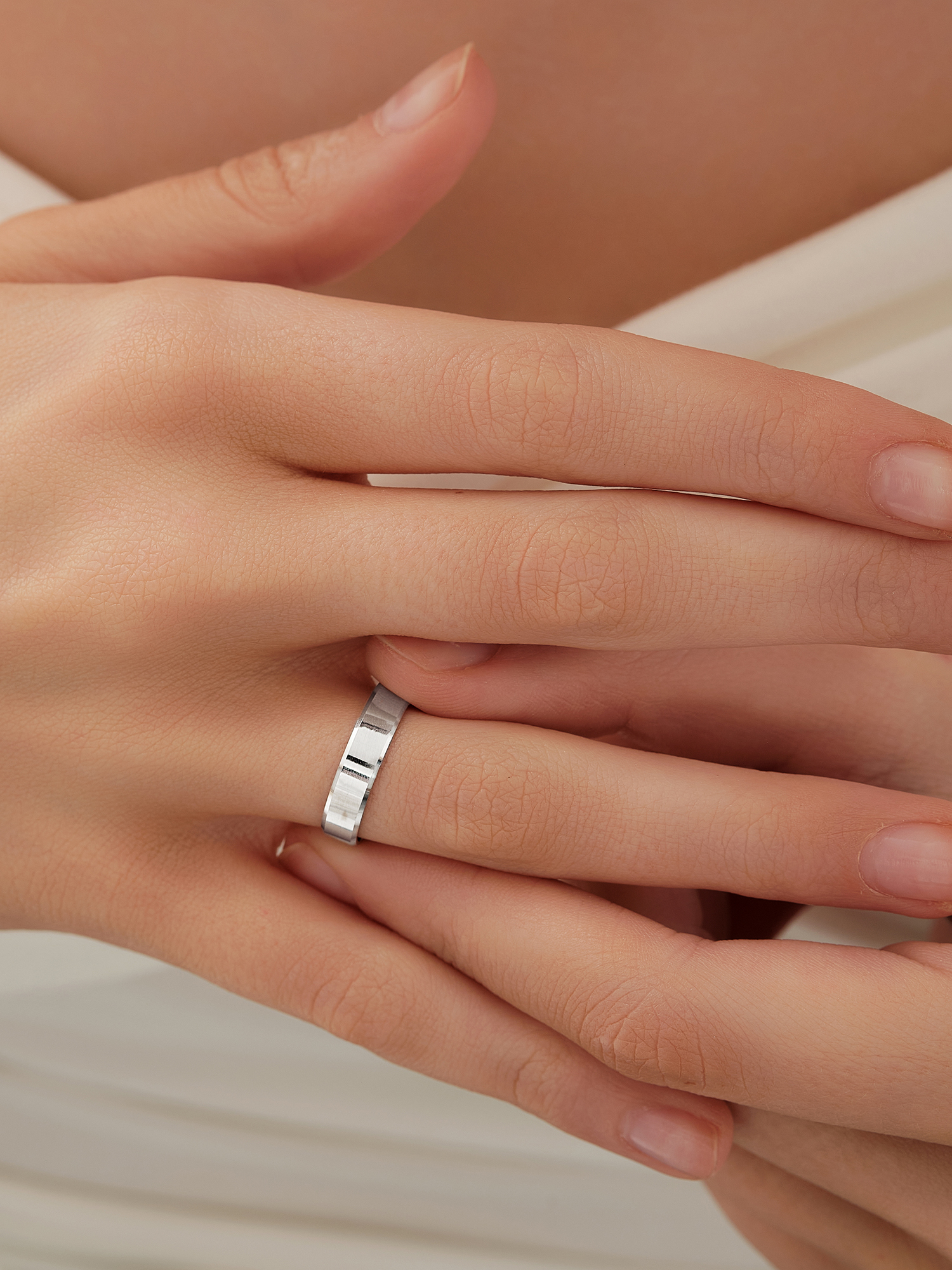 Обручальное кольцо из белого золота 585 пробы с прямым европейским сечением
