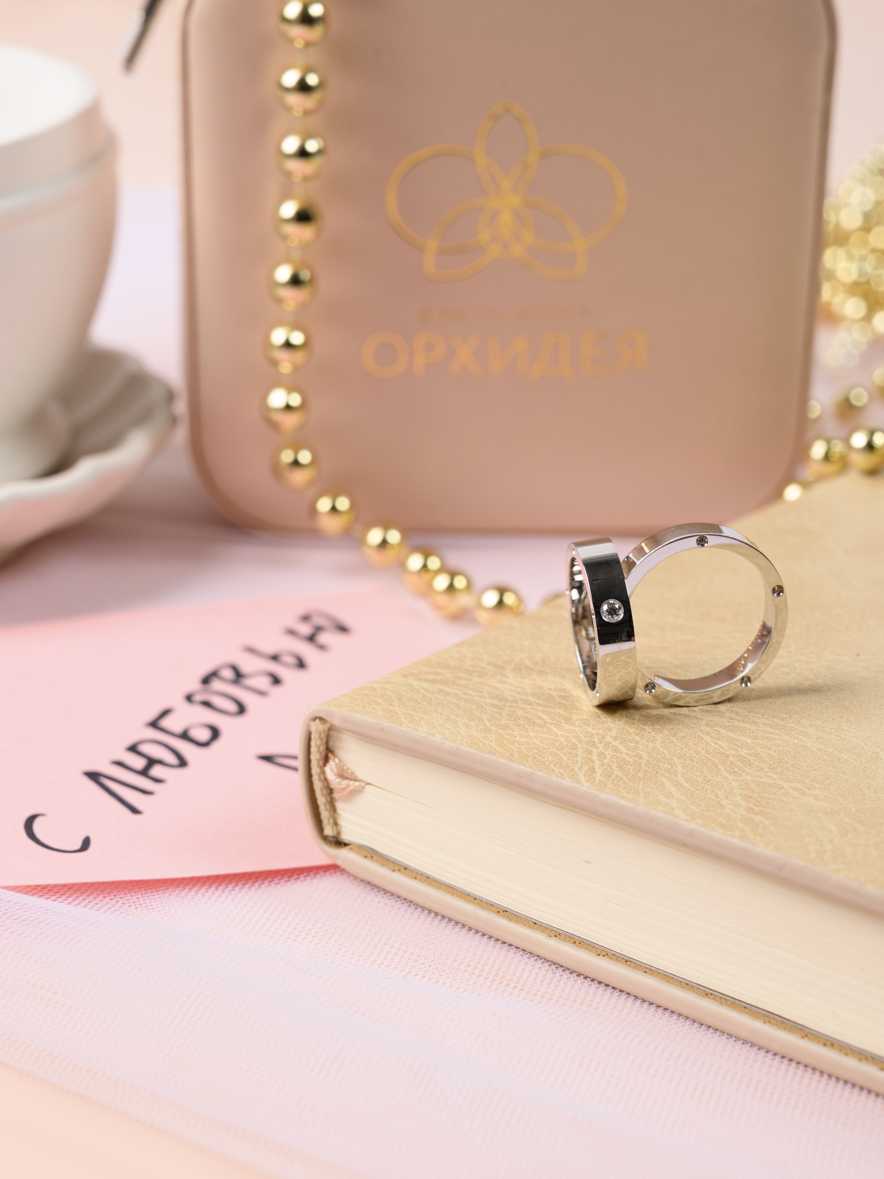 Обручальное кольцо из белого золота 585 пробы с бриллиантами