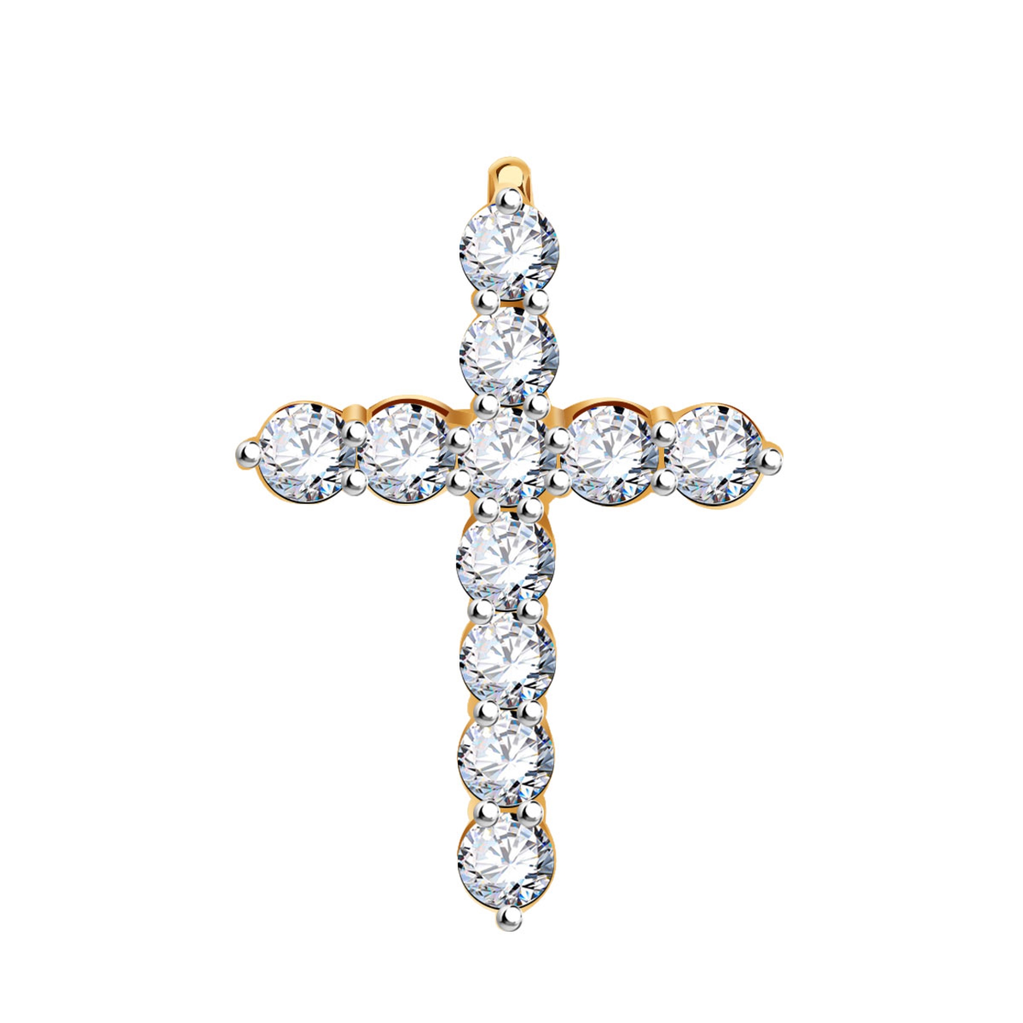 Подвеска декоративный крест из золота 585 пробы с фианитами