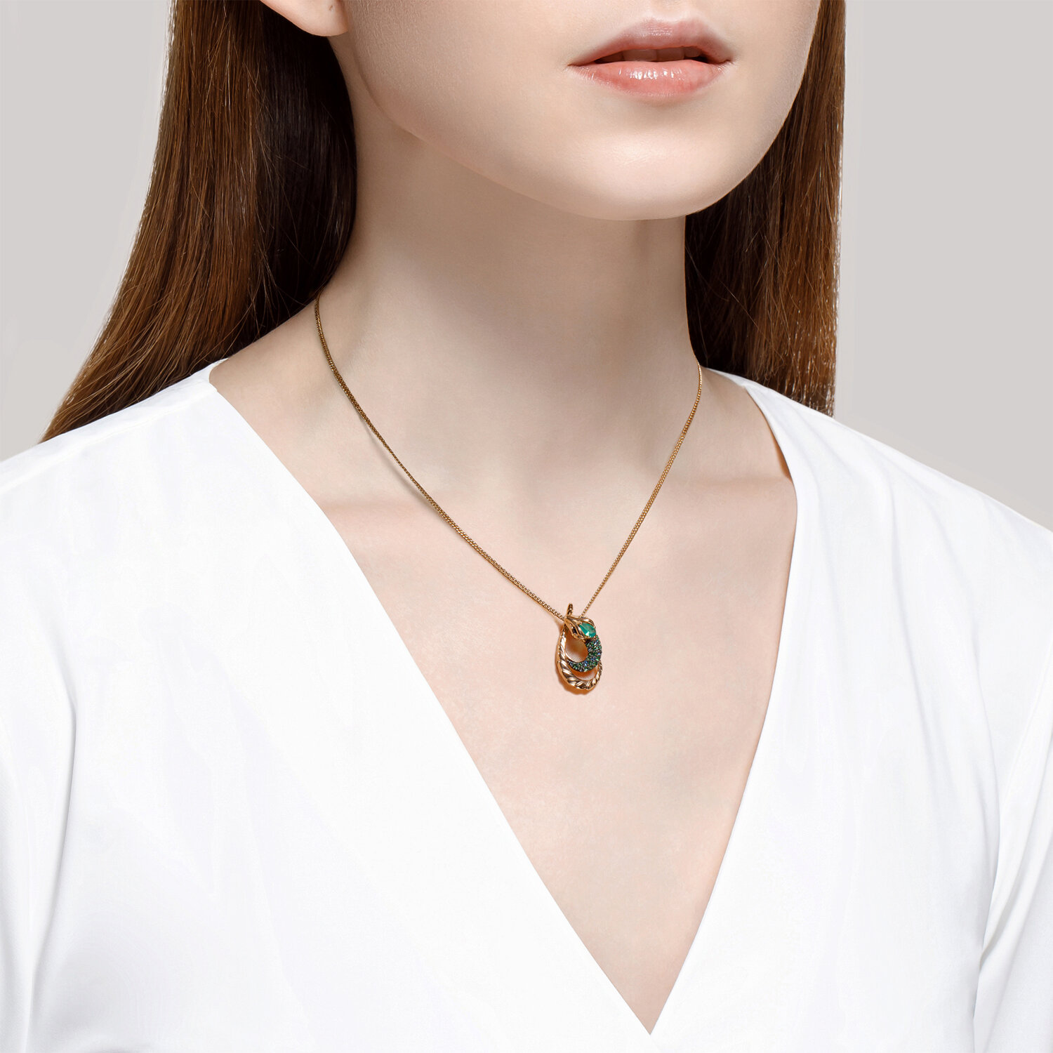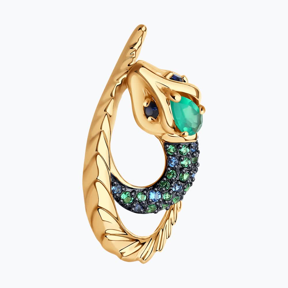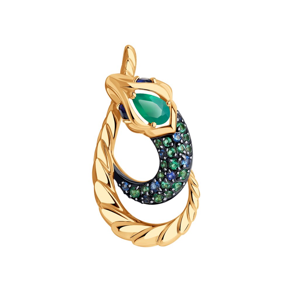 Подвеска (585) корунд сапфир синт., агат, фианит