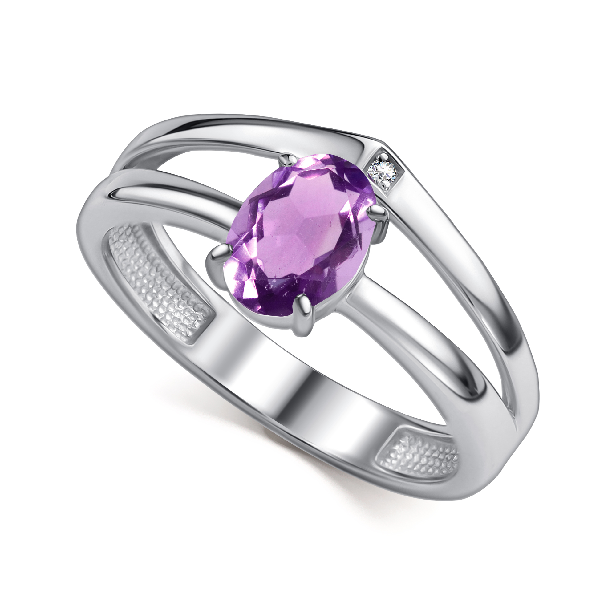 Кольцо из серебра 925 пробы с аметистом и бриллиантами