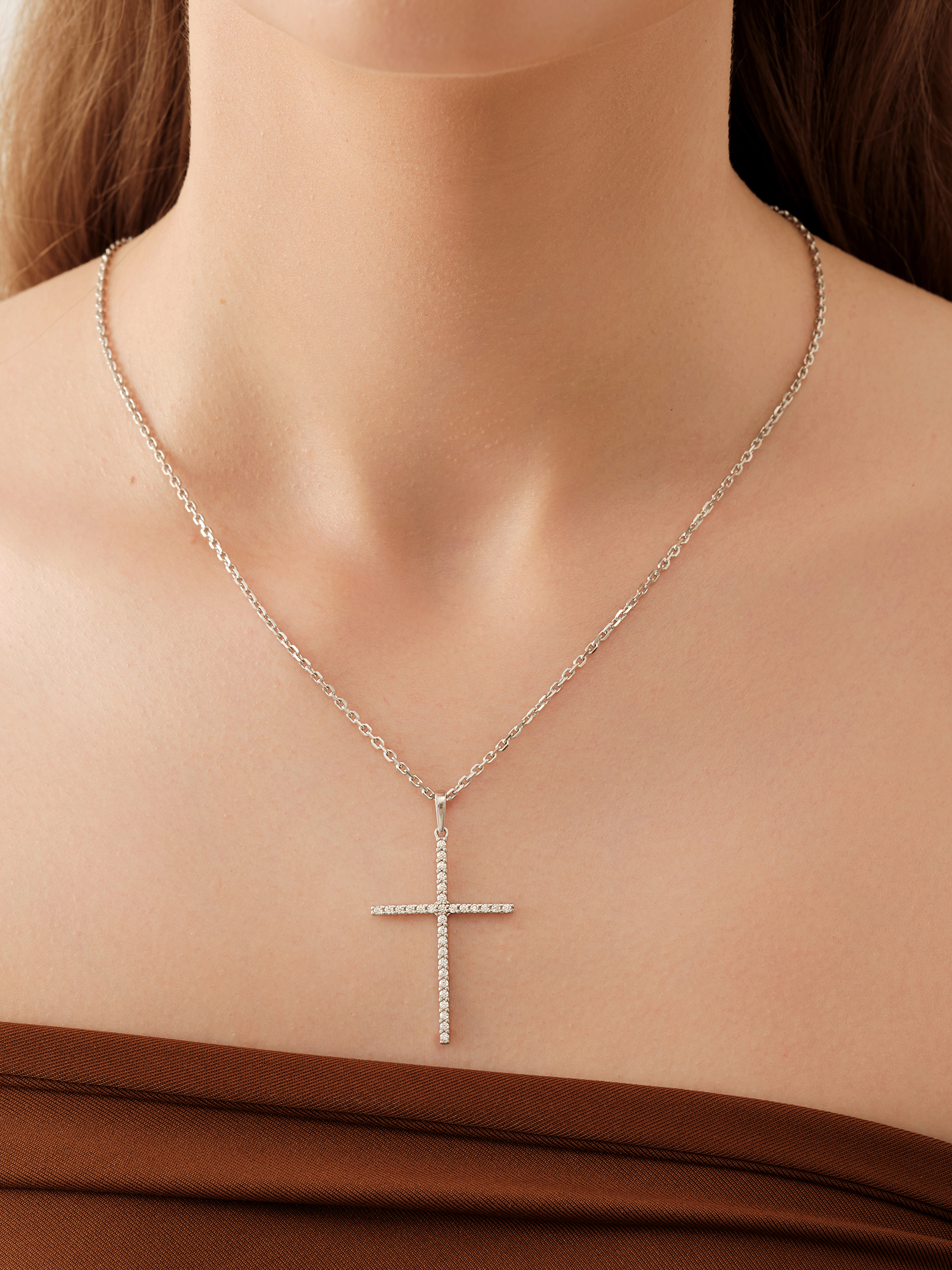 Подвеска декоративный крест из серебра 925 пробы с фианитами