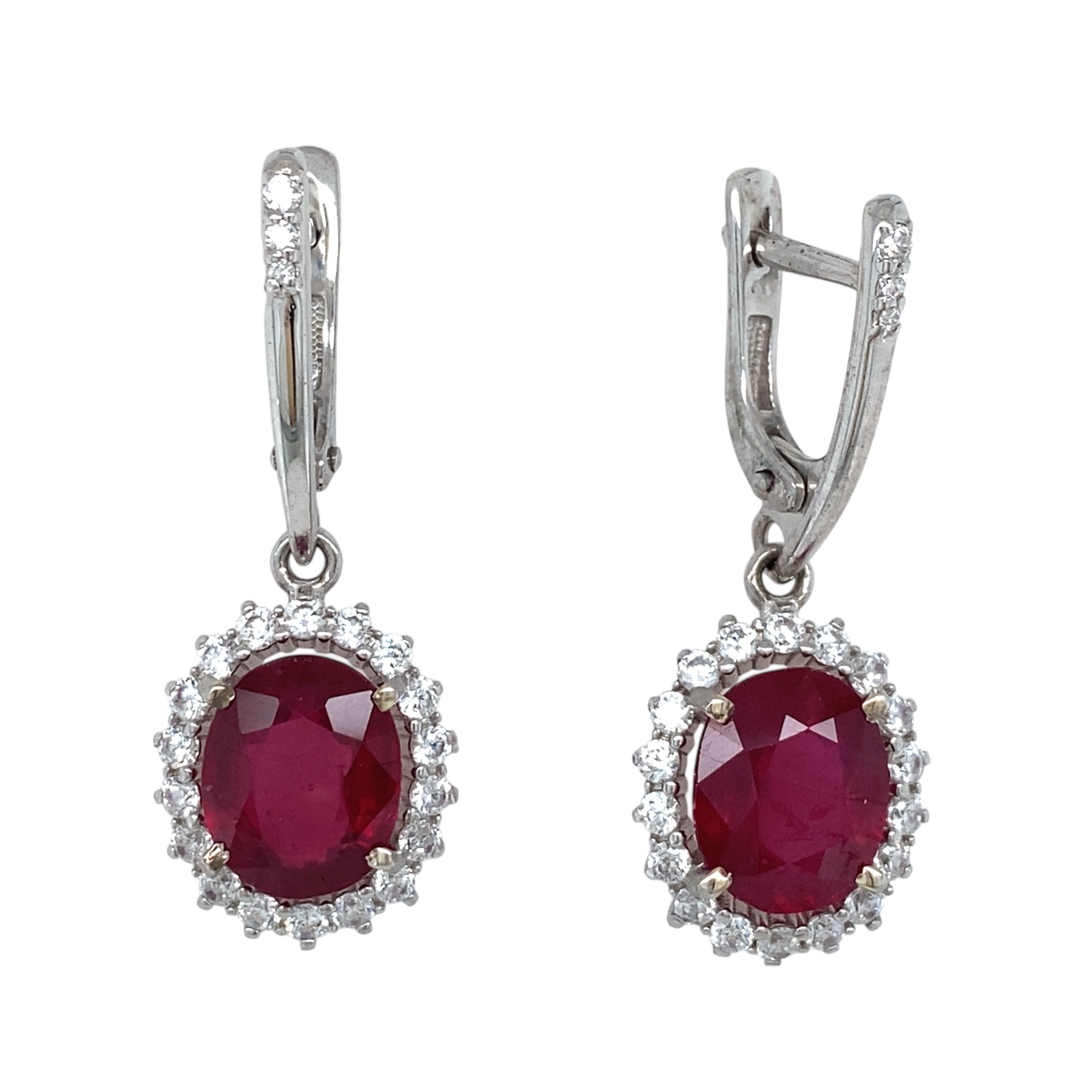 Серьги из серебра 925 пробы с рубинами и фианитами