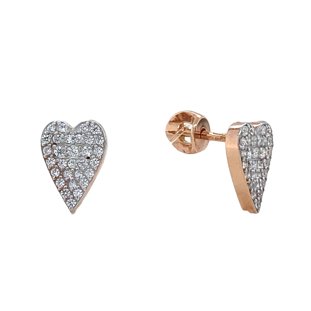Серьги пусеты из серебра 925 пробы с позолотой, с фианитами