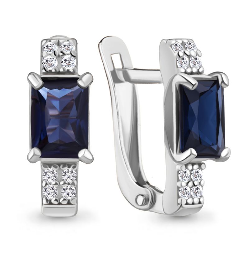 Серьги из серебра 925 пробы с искусвтвенным сапфиром и фианитами