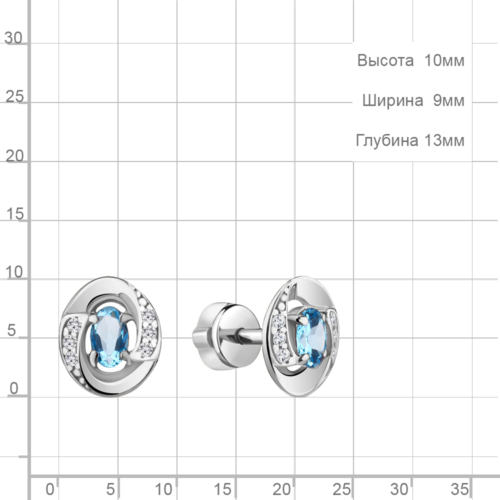 Серьги пусеты из серебра 925 пробы с топазами и фианитами