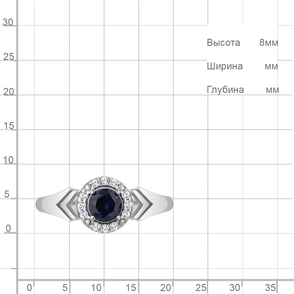 Кольцо из серебра 925 пробы с искусственным сапфиром и фианитами