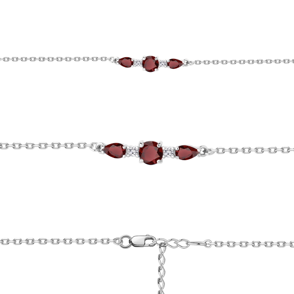 Браслет из серебра 925 пробы с гранатом и фианитами