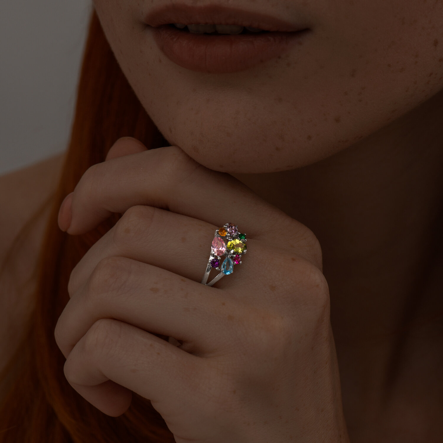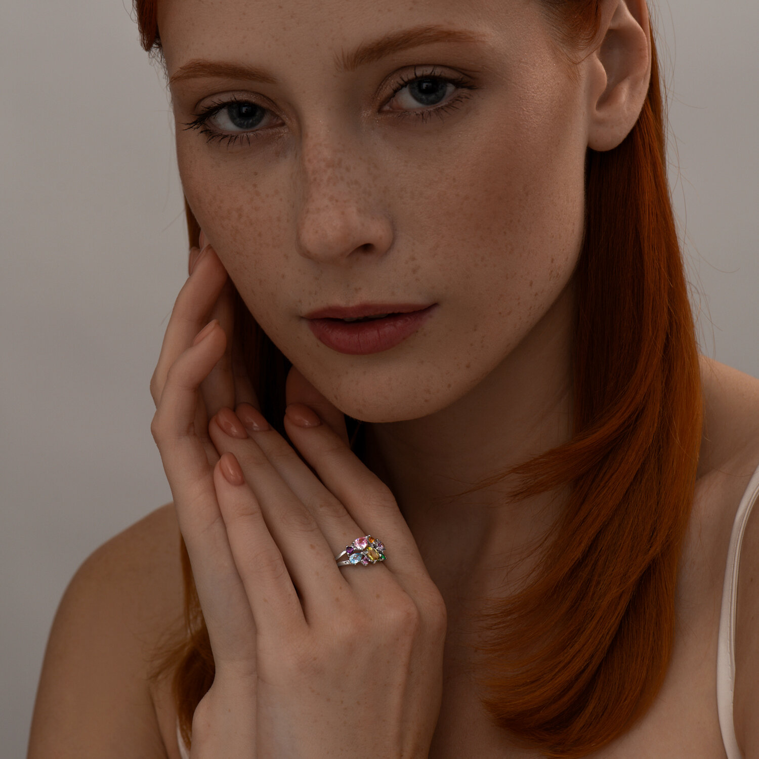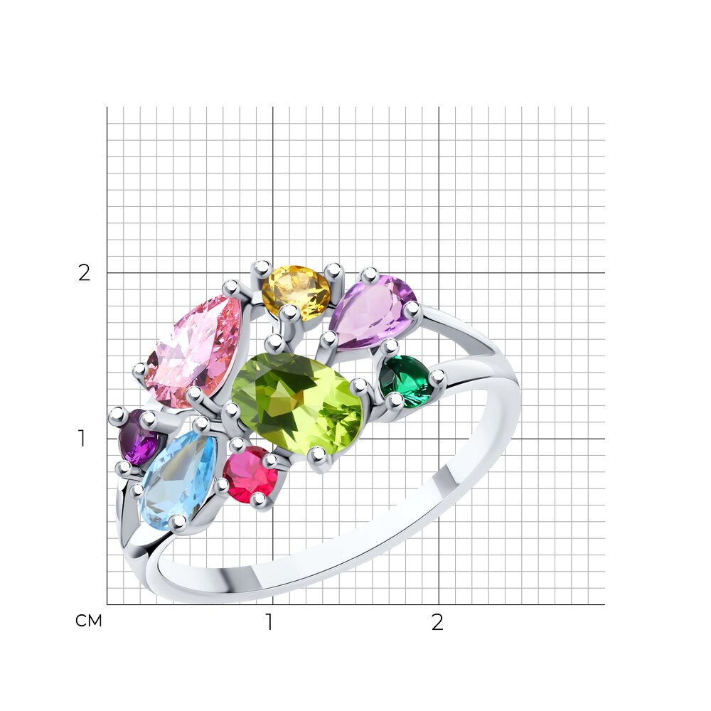 Кольцо из серебра 925 пробы с выращенными рубинами, топазами, хризолитами, аметистами и и фианитами