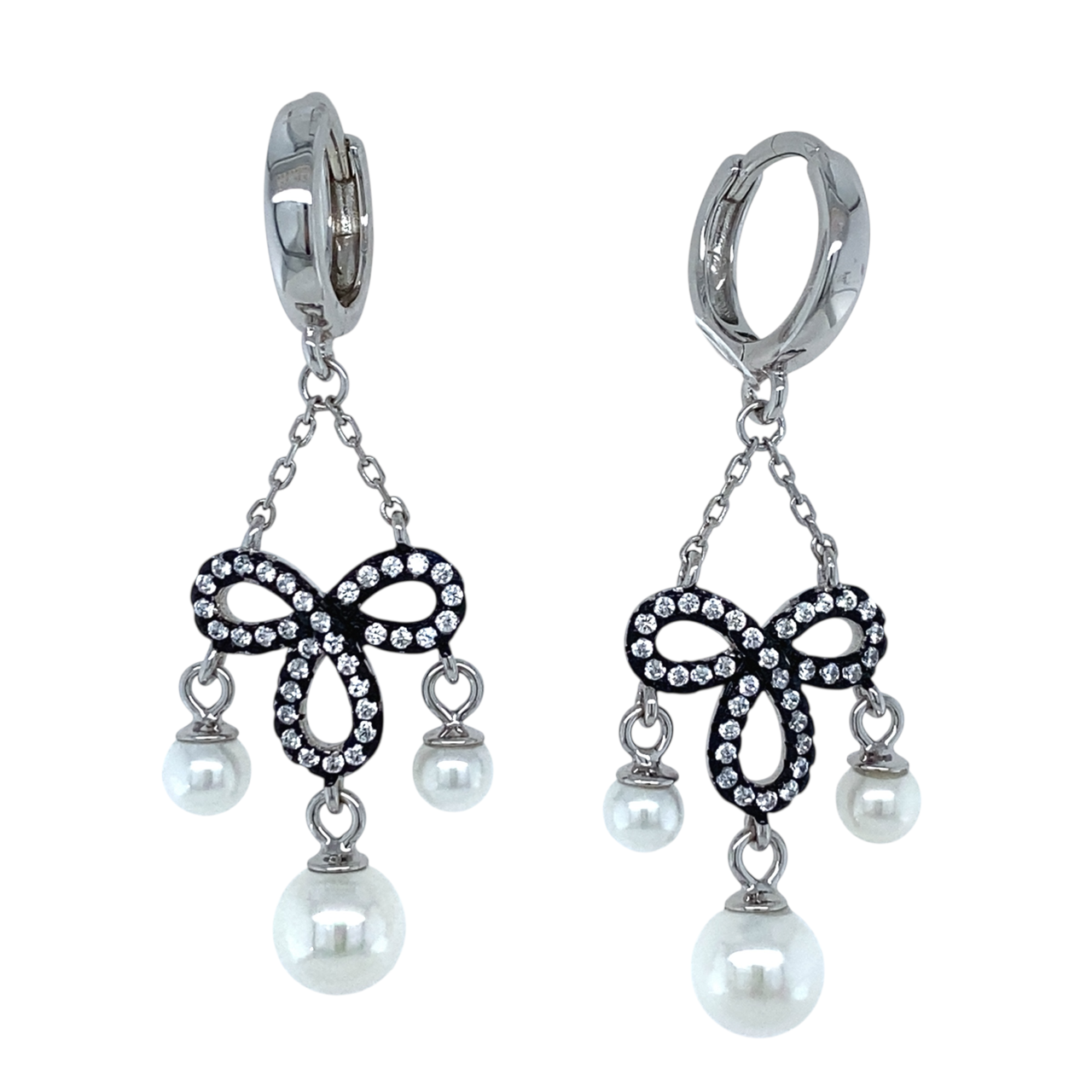 Серьги из серебра 925 пробы с синтетическим жемчугом и фианитами