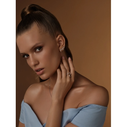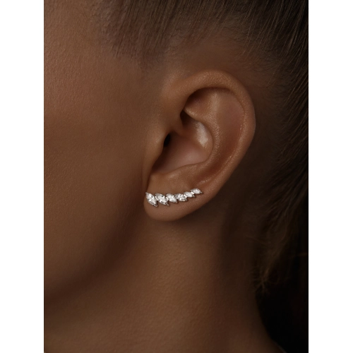 Моносерьга кафф из серебра 925 пробы с цветными фианитами