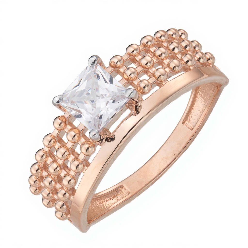 Кольцо из серебра 925 пробы с позолотой, с фианитами
