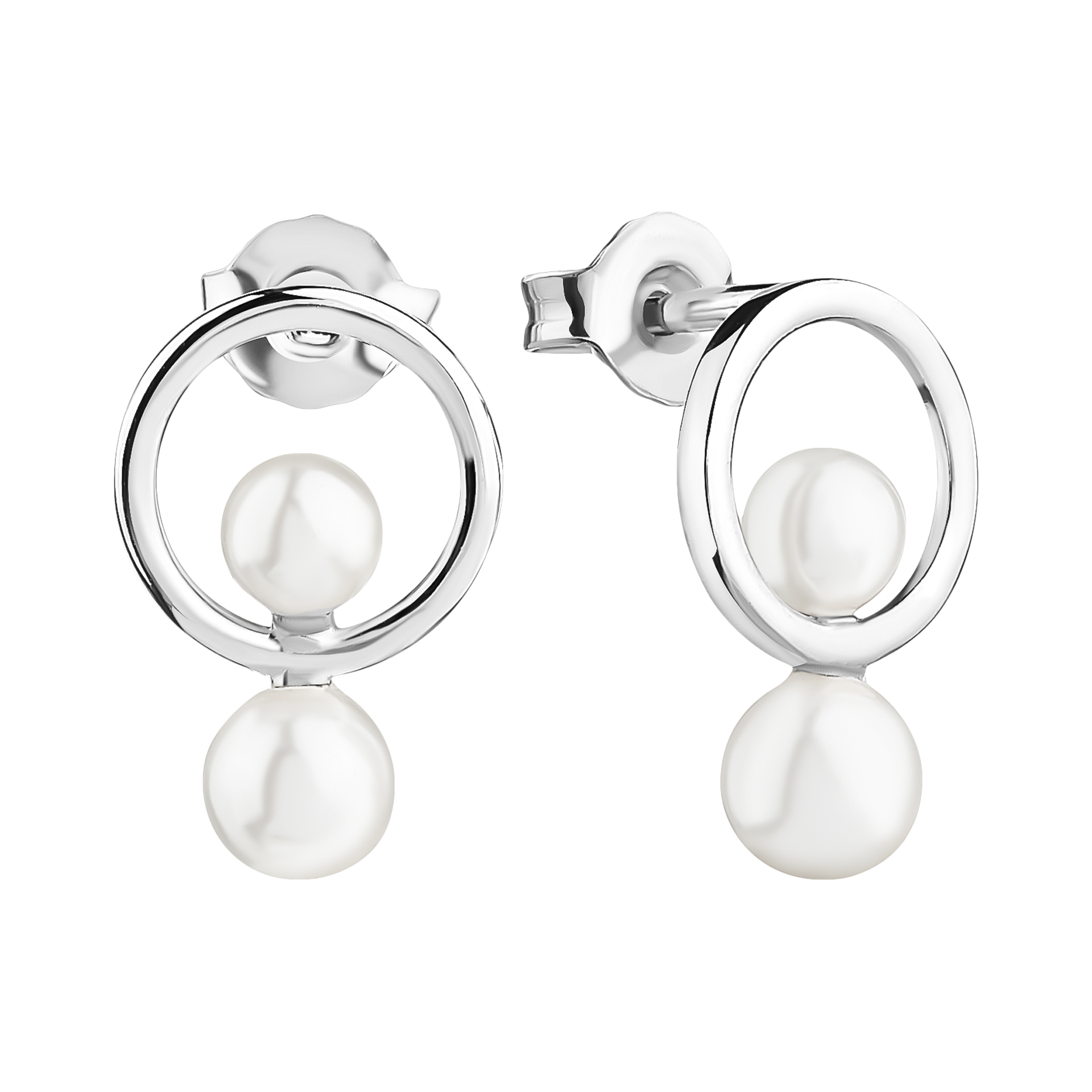 Серьги пусеты из серебра 925 пробы с искусственным жемчугом