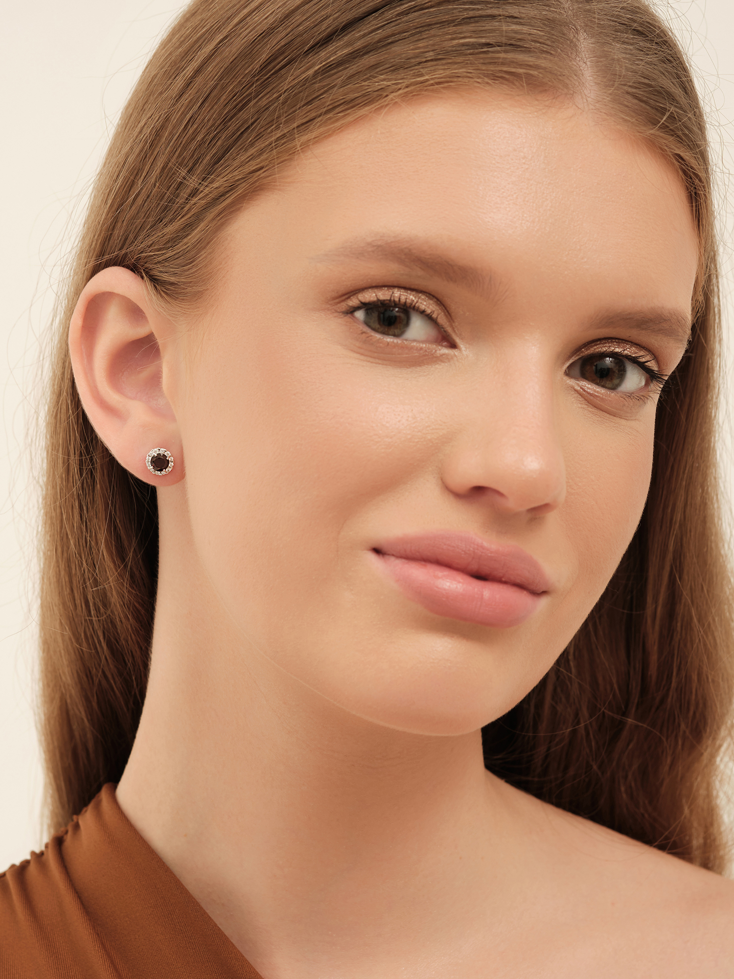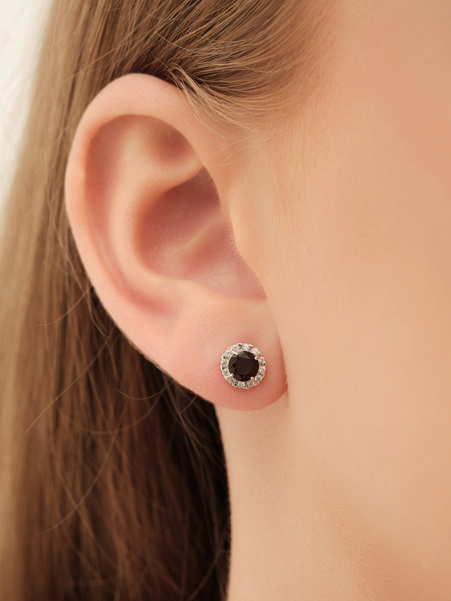 Классические серьги-пусеты с гранатами в обрамлении фианитов будут универсальным украшением как на каждый день, так и к вечернему наряду. Свойства самоцвета подарят взаимную любовь и поспособствуют счастливой семейной жизни.