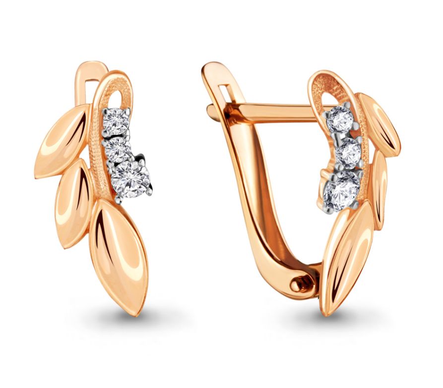 Серьги из серебра 925 пробы с позолотой, сфианитами