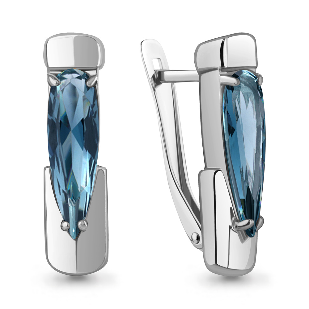 Серьги из серебра 925 пробы с искусственным топазом London Blue
