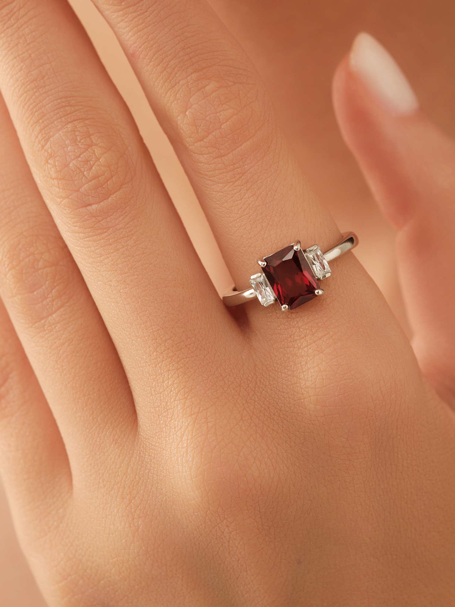 Кольцо из серебра 925 пробы с искусственным гранатом и фианитами