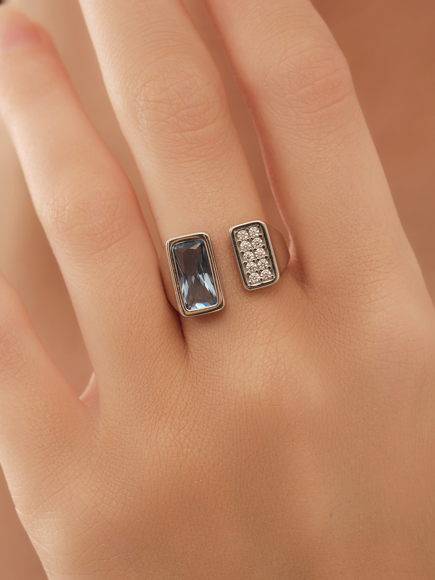 Кольцо из серебра 925 пробы с искусственным топазом и фианитами