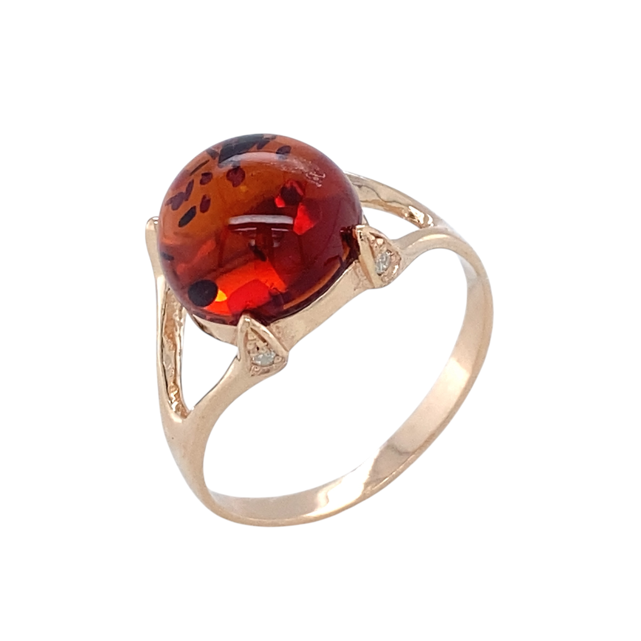 Кольцо из серебра 925 пробы с позолотой, с янтарем и фианитами
