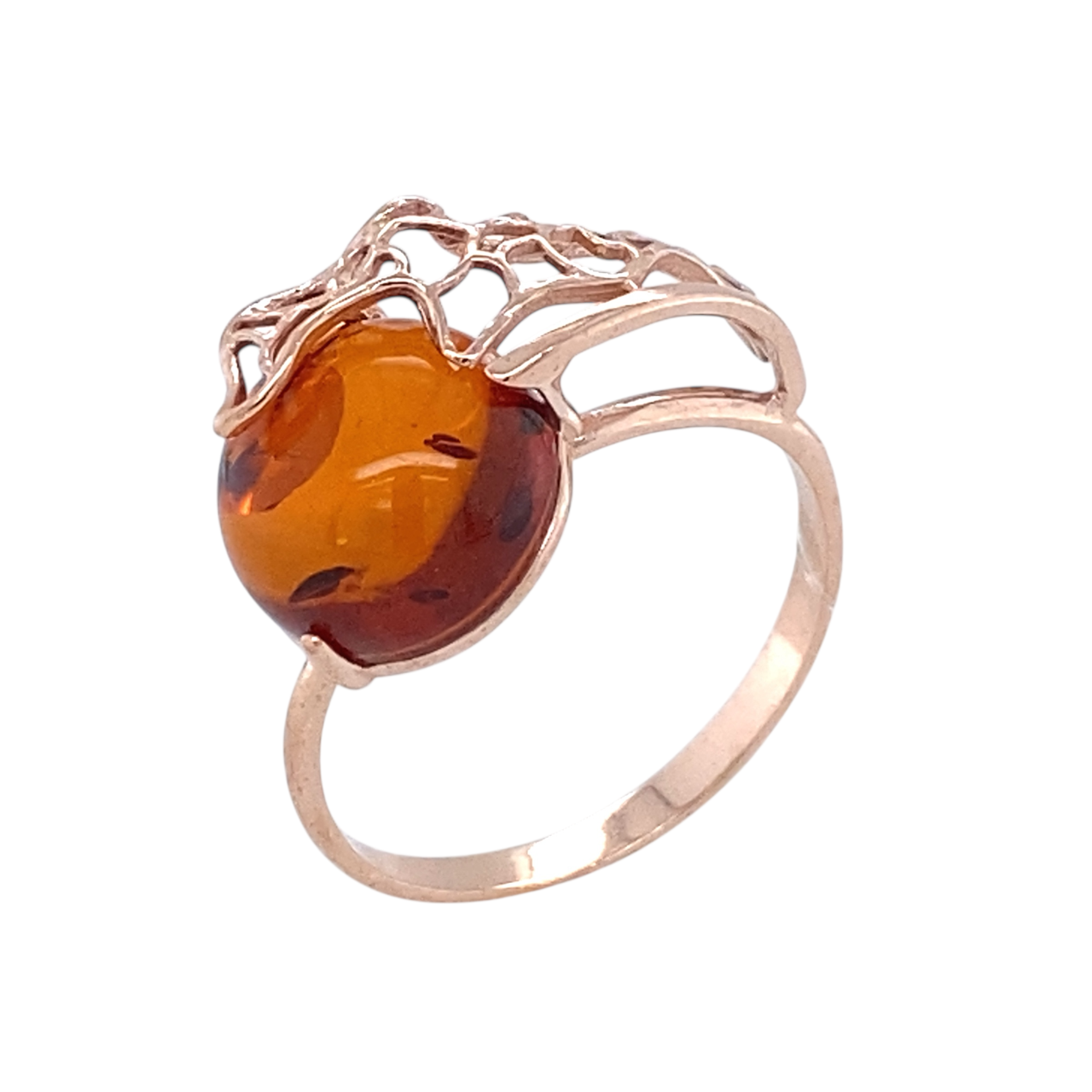 Кольцо из серебра 925 пробы с позолотой, с янтарем