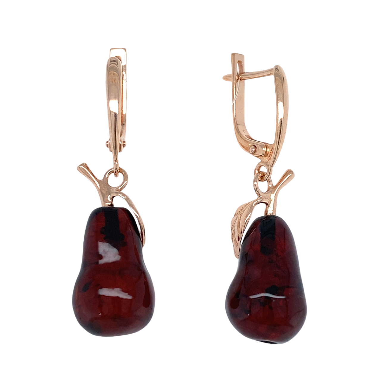 Серьги из серебра 925 пробы с позолотой, с янтарем