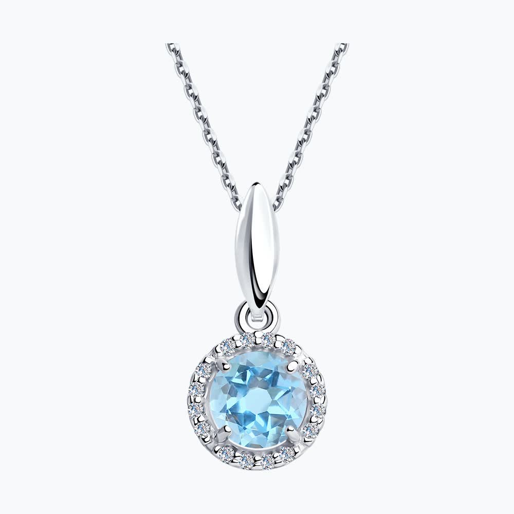 Подвеска круглой формы из серебра с голубым топазом в обрамлении фианитов - незаменимая классика. Безумно нежная и женственная модель украшения, которая прекрасно вольется в любой гардероб. Топаз укрепляет дружеские и любовные отношения.