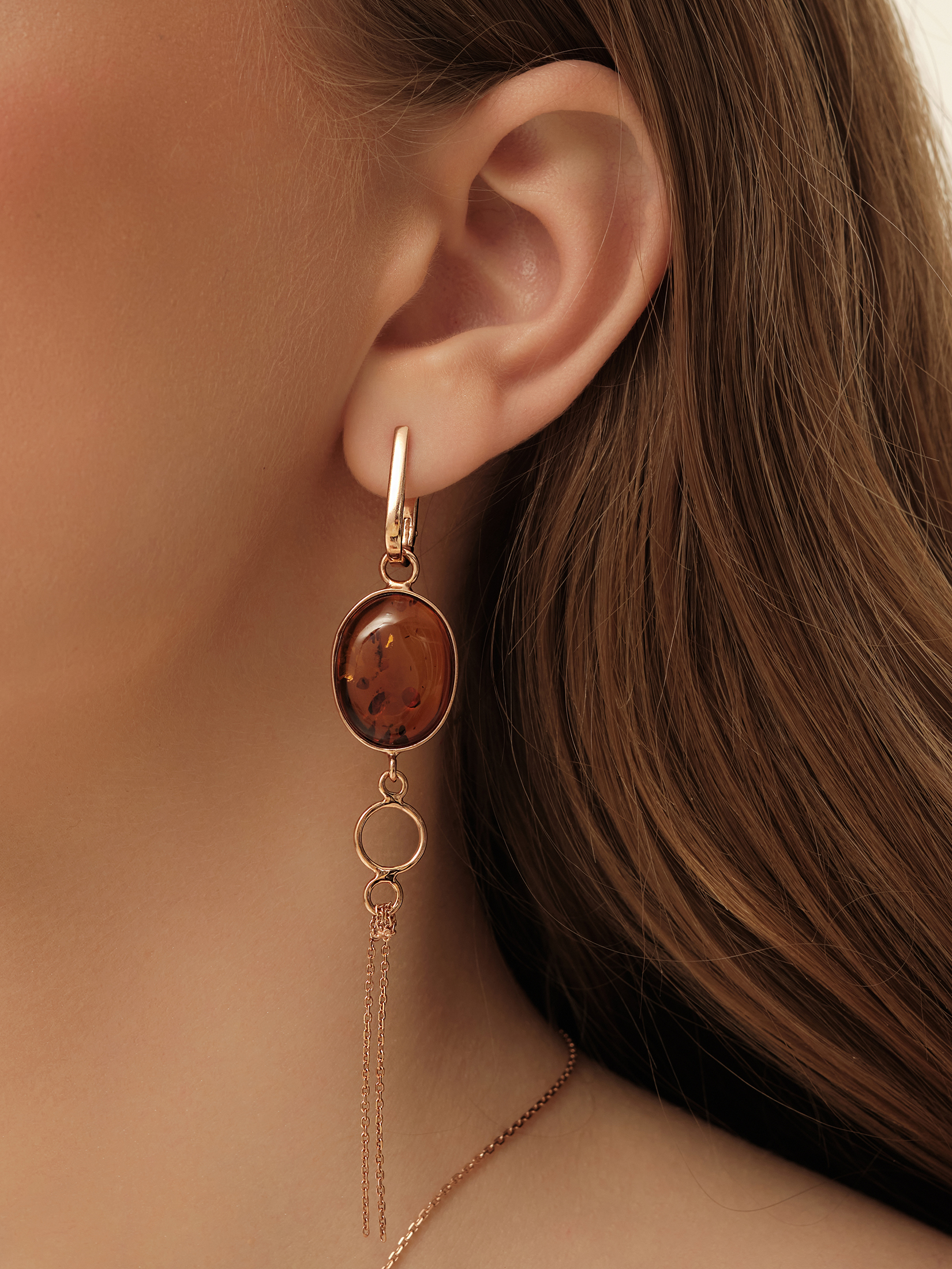 Серьги из серебра 925 пробы с позолотой, с янтарем