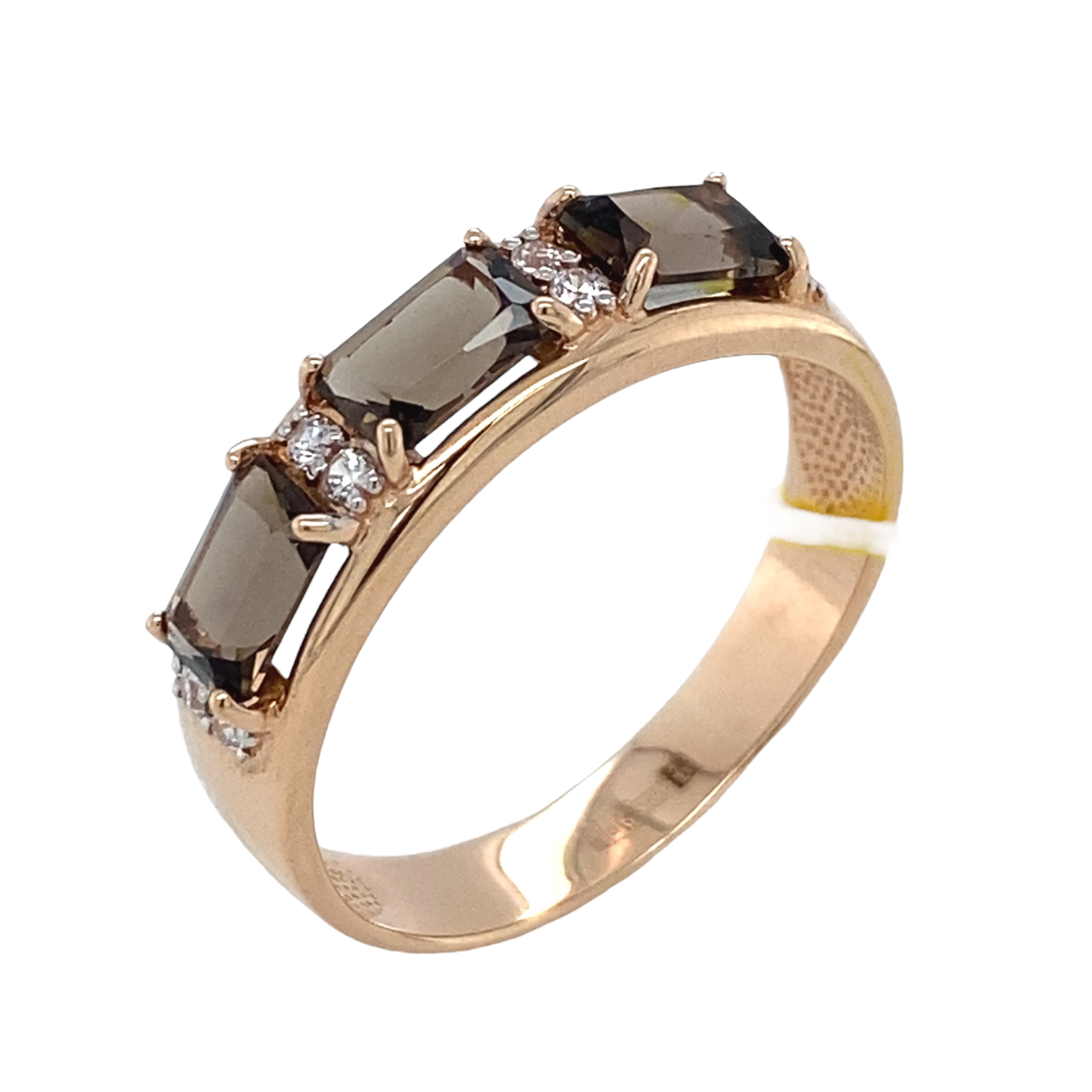 Кольцо из золота 585 пробы с раухтопазом и фианитами