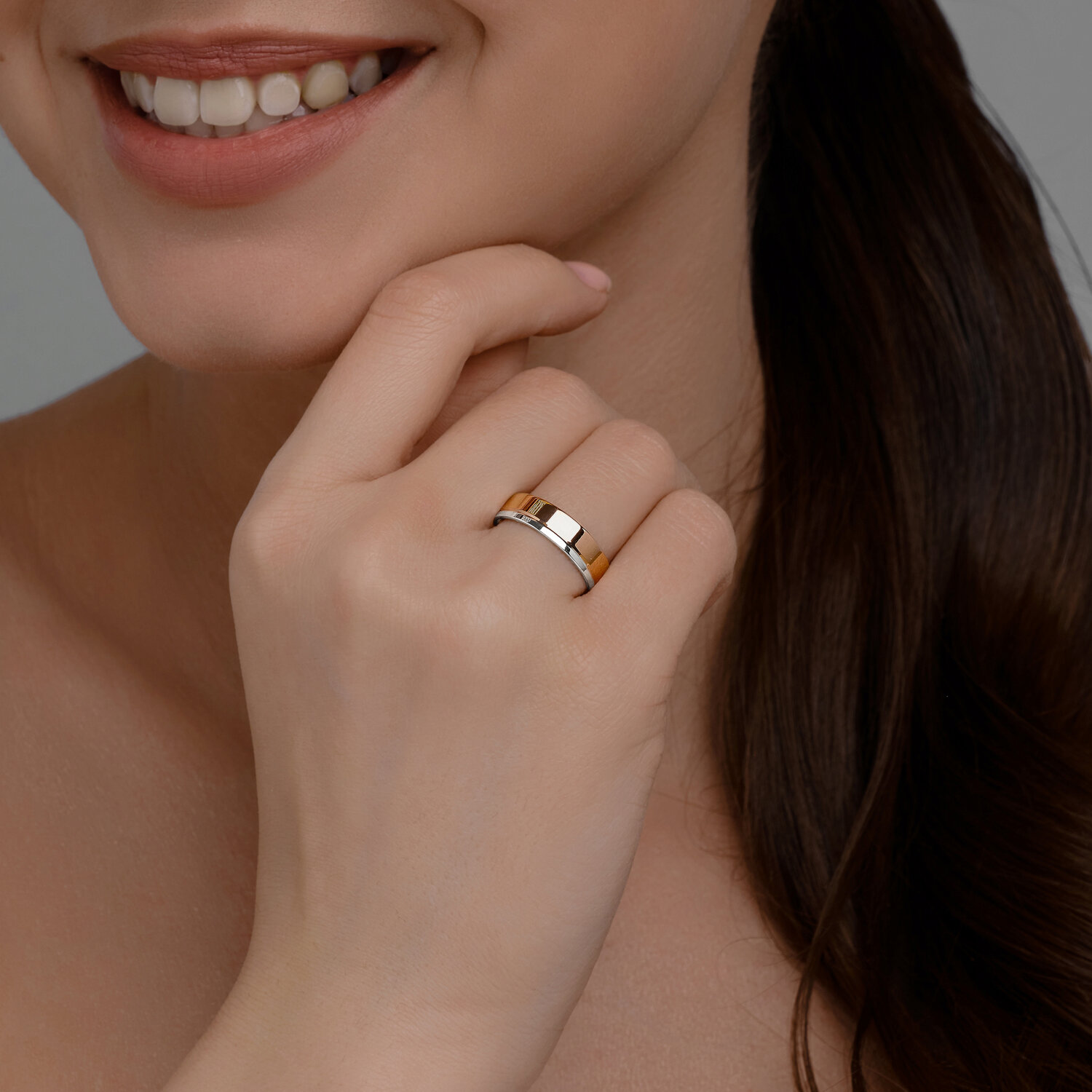 Кольцо, в котором представлен микс двух видов золота, выглядит менее консервативно, нежели его «собратья» в стиле соло. А визуальная схожесть белого золота с платиной, делает такое кольцо более дорогим и роскошным в глазах и его владельца, и окружающих.