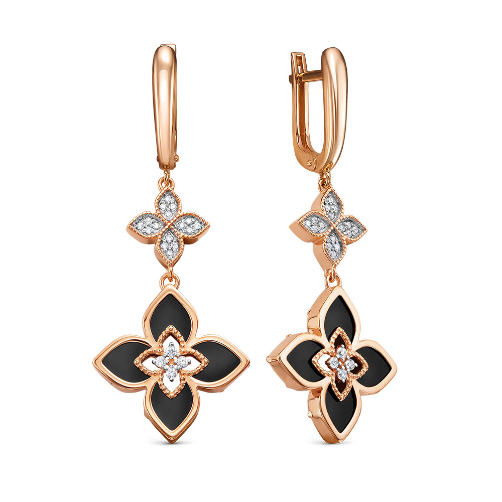 Серьги из золота 585 пробы с ониксом и фианитами