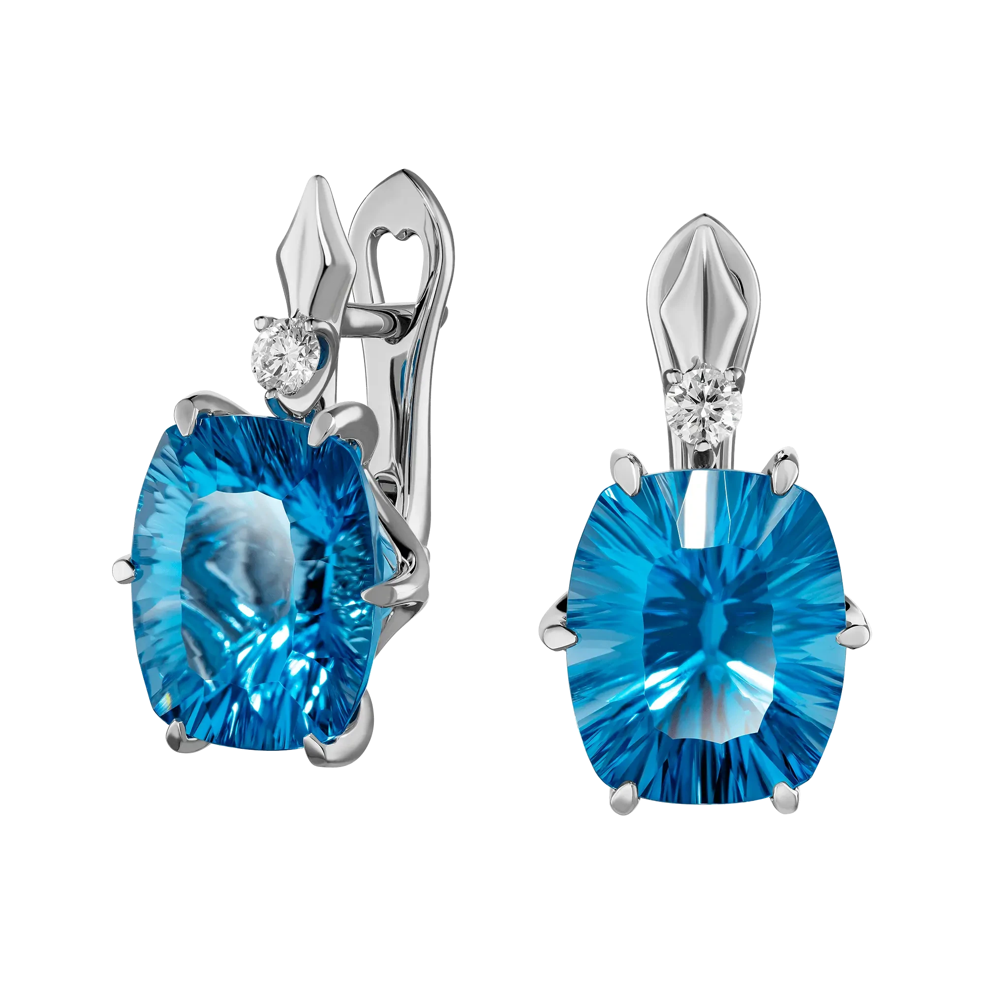 Серьги из белого золота 585 пробы с топазами и бриллиантами