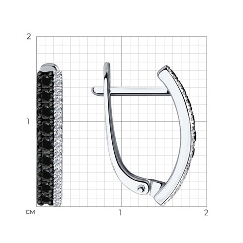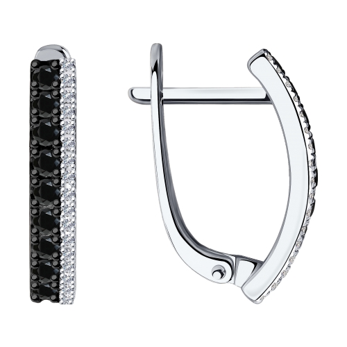 Серьги из белого золота 585 пробы с белыми и черными бриллиантами
