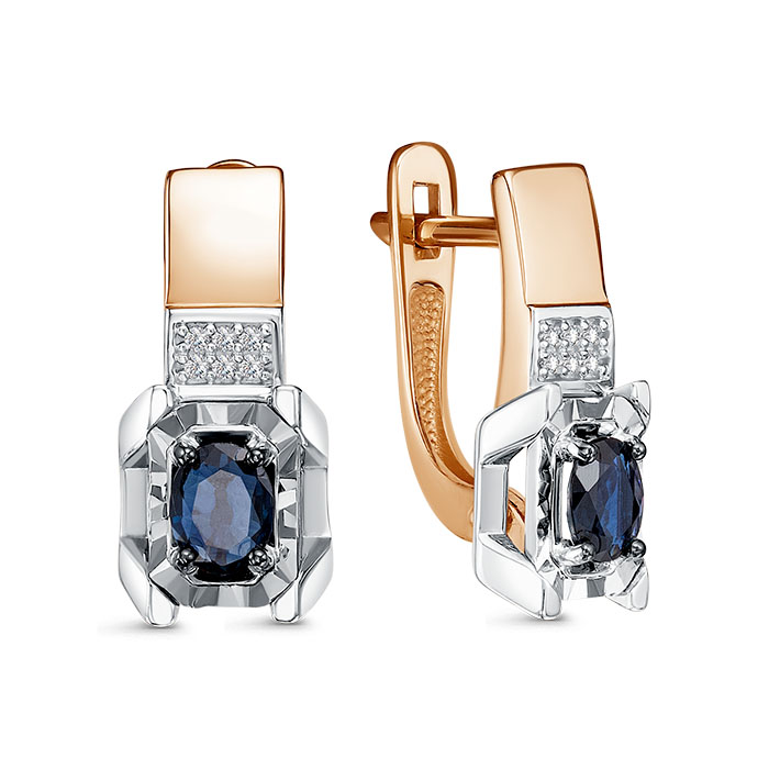 Серьги из золота 585 пробы с сапфирами и бриллиантами