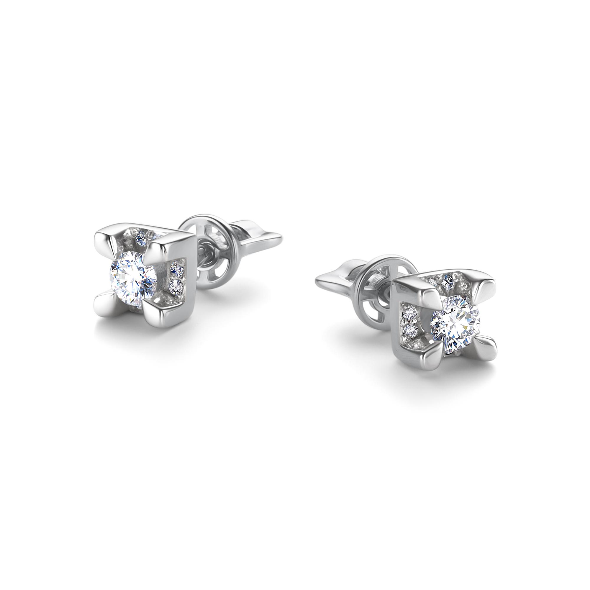 Серьги пусеты из белого золота 585 пробы с бриллиантами