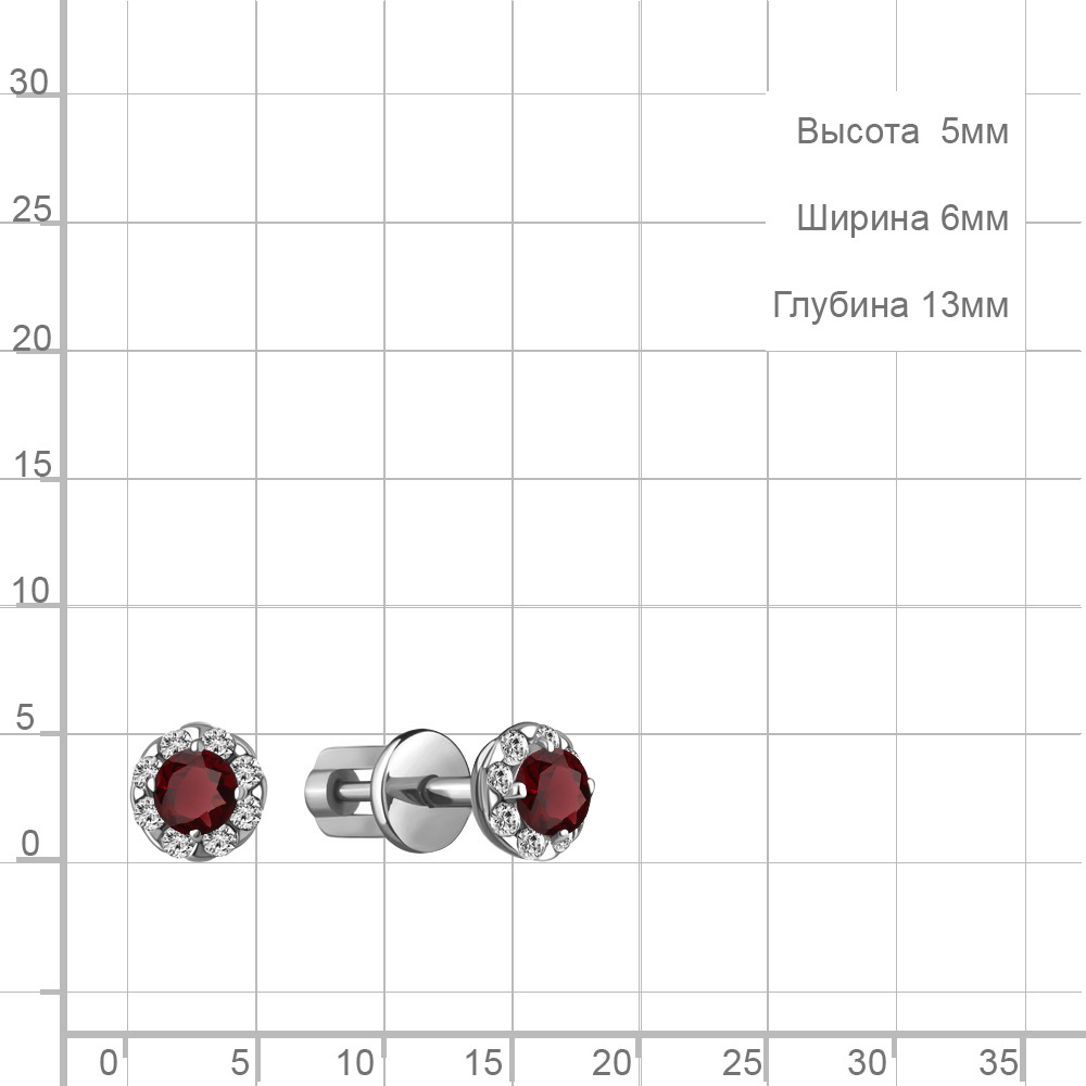 Серьги пусеты из серебра 925 пробы с гранатами и фианитами