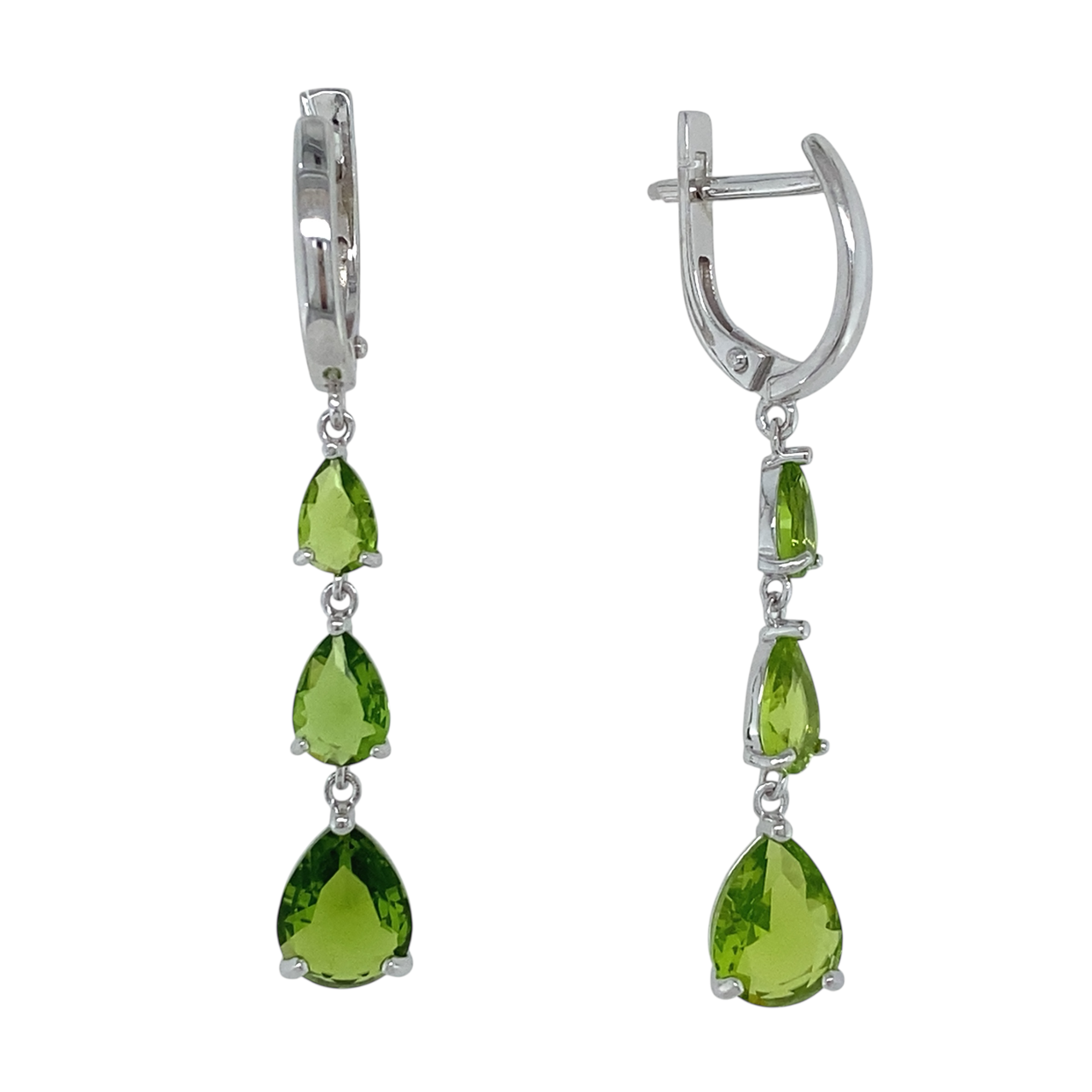 Серьги из серебра 925 пробы с искусственным хризолитом