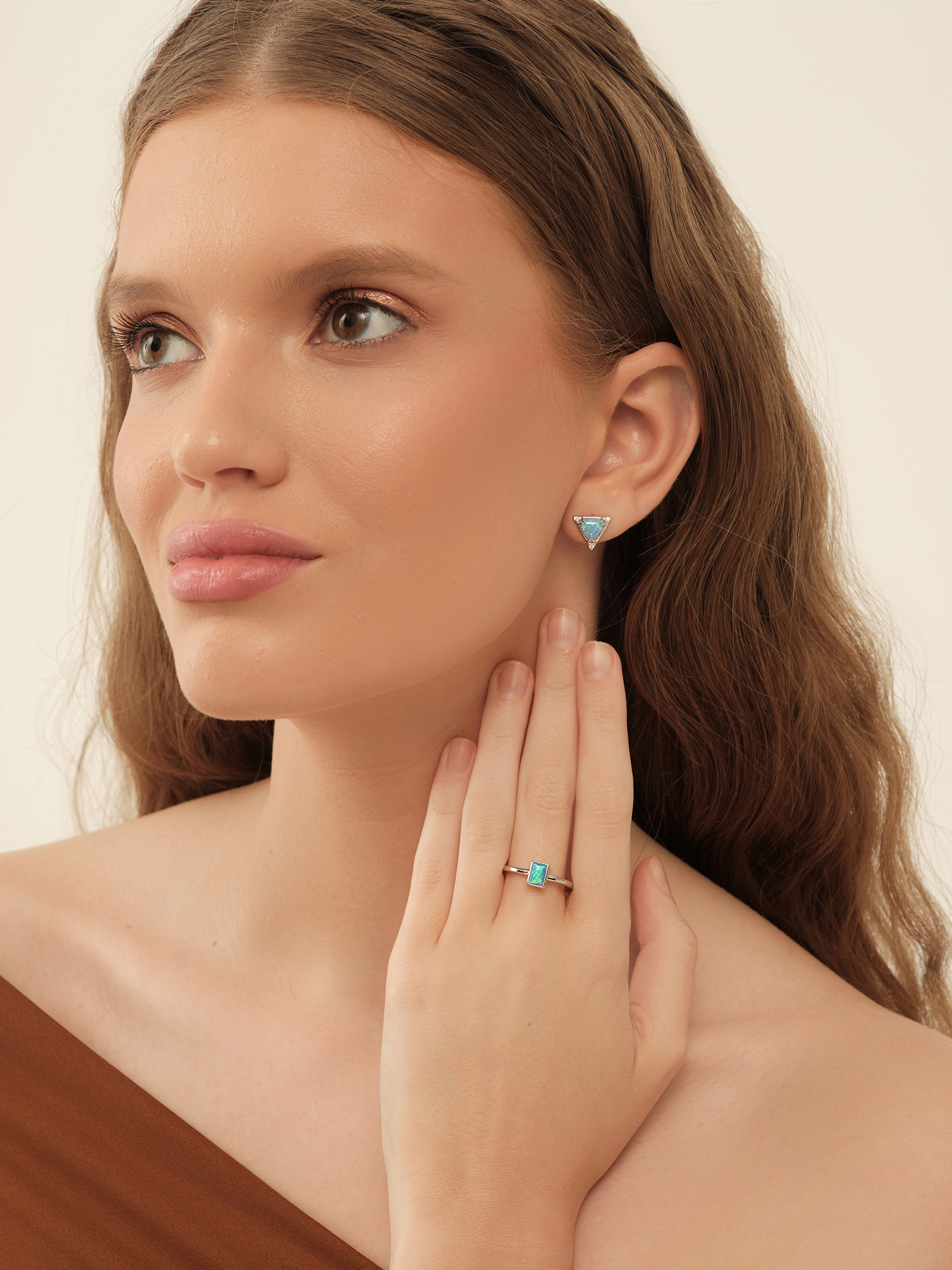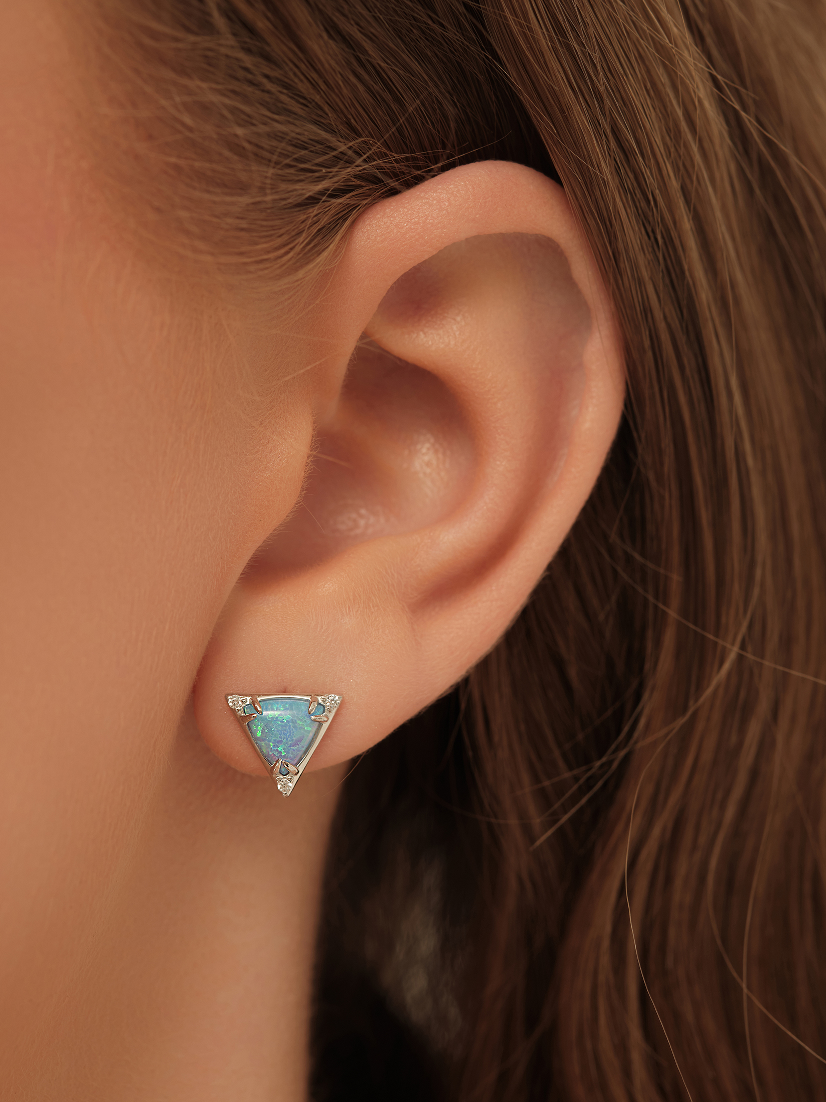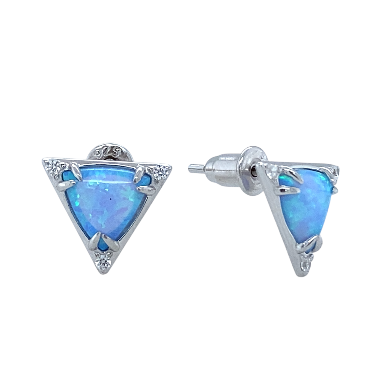 Серьги пусеты из серебра 925 пробы с искусственными опалпми и и фианитам